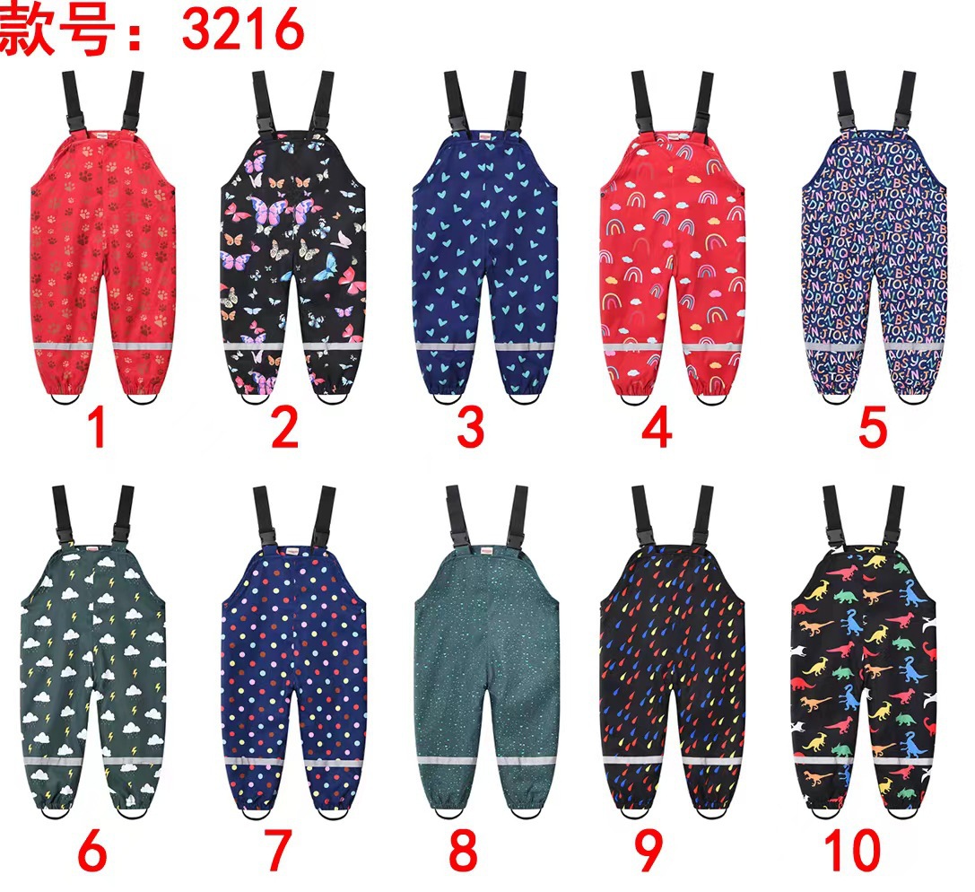 새로운 중소 소년 소녀 아기 놀이 물 바지 어린이 끈 멀티 컬러 프린트 레인 바지 야외 폭행 바지 도매