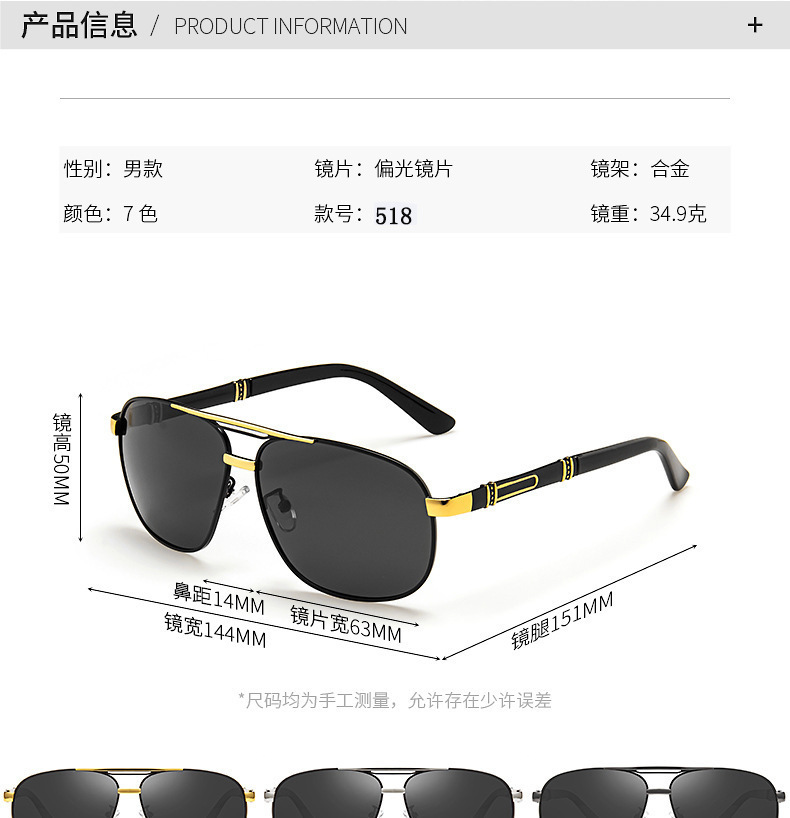 남성 패션 편광 선글라스 유럽과 미국의 인기있는 새로운 더블 빔 HD 선글라스 남성 운전 낚시 고글 518