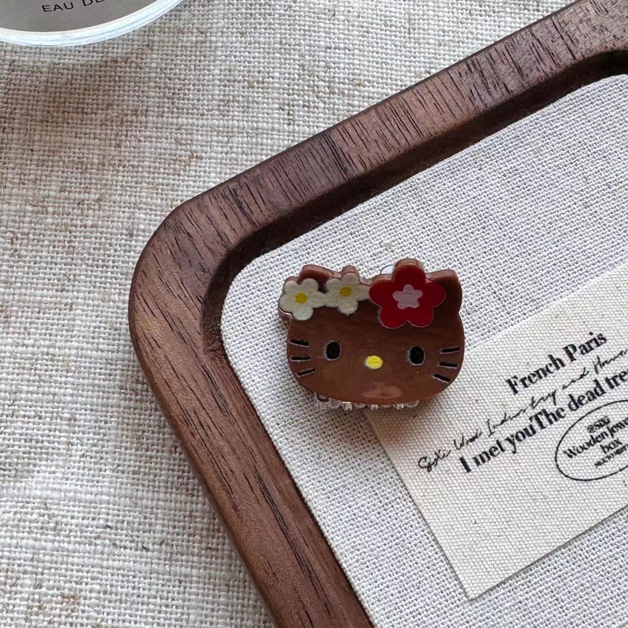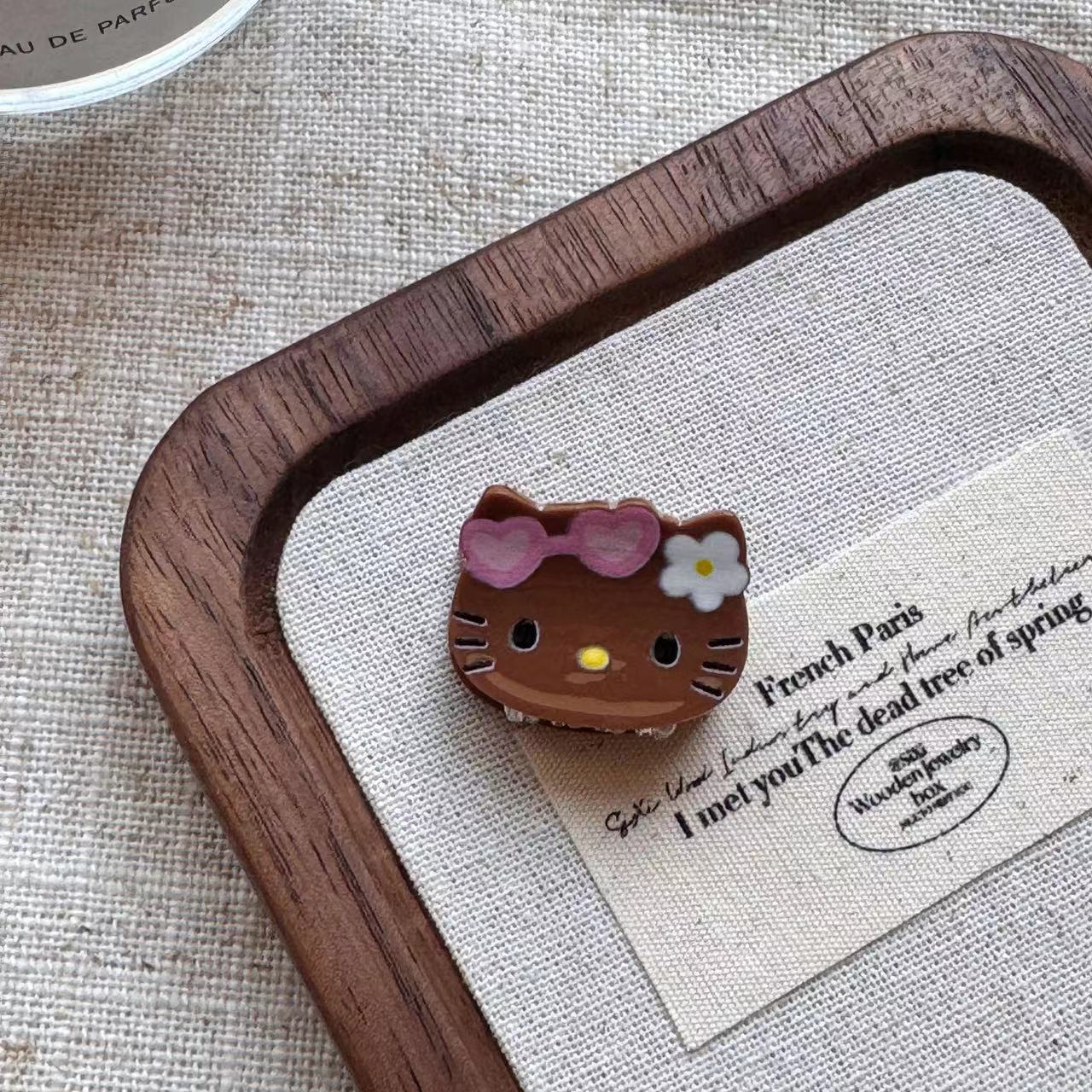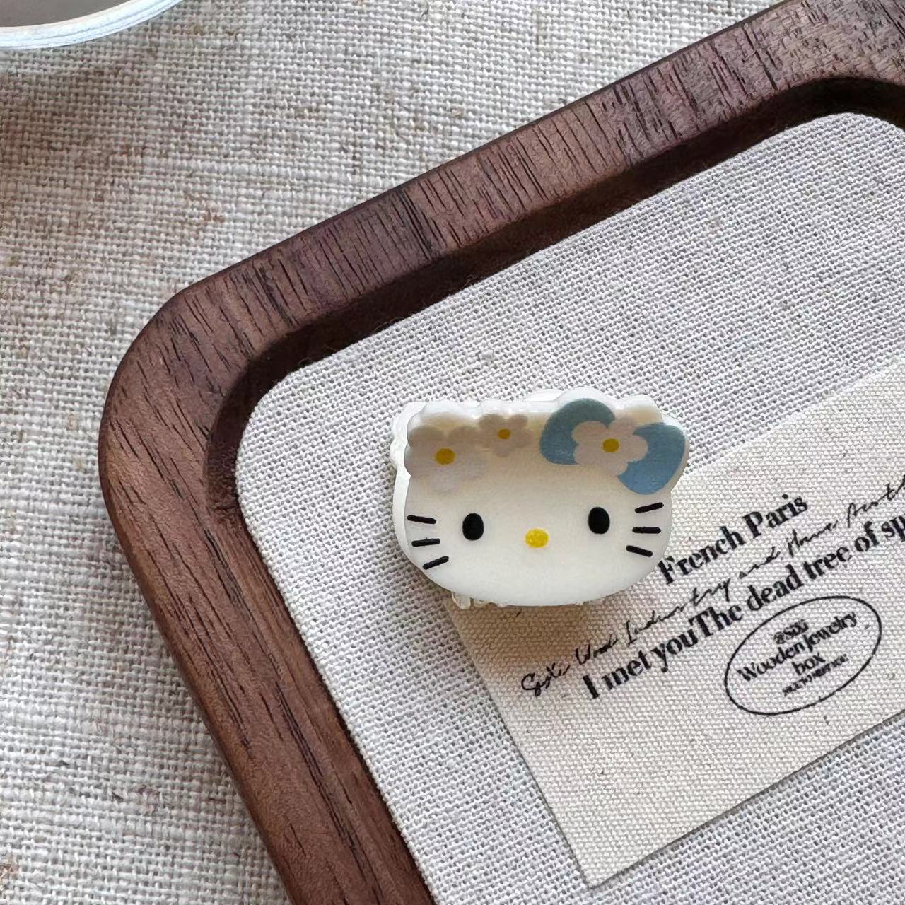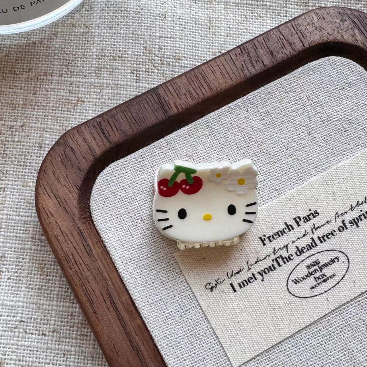 빈티지 블랙 가죽 Kt 고양이 미니 작은 잡아 클립 달콤한 소녀의 하트 헤어 그랩 뱅 클립 일본 귀여운 만화 헤드웨어 여성