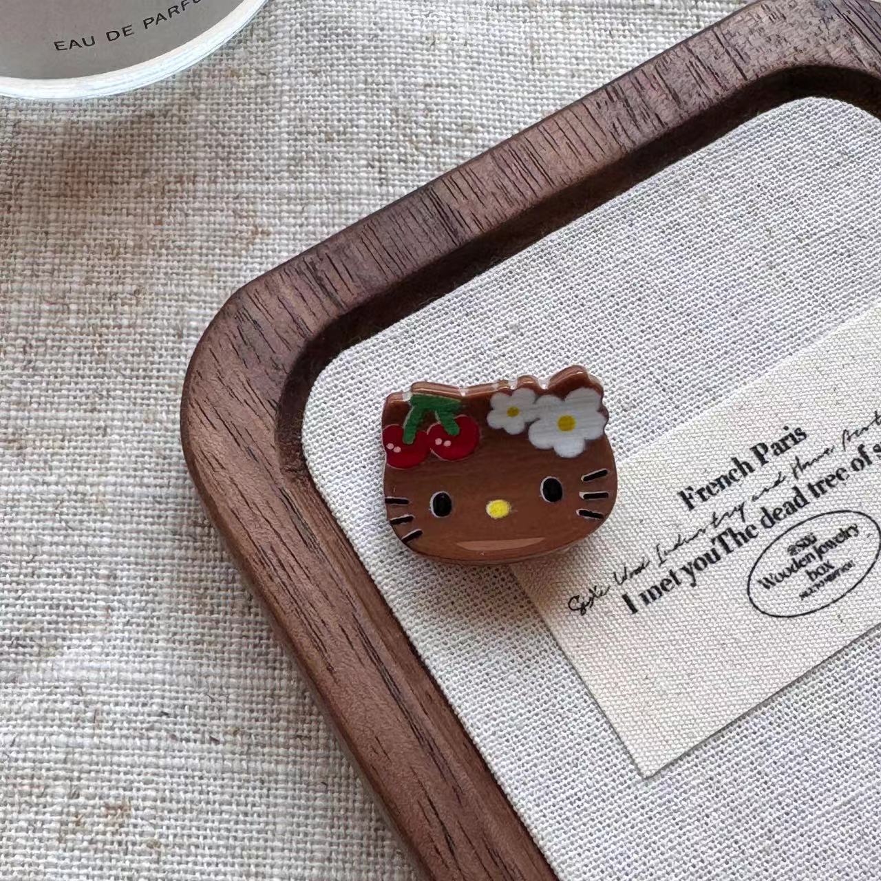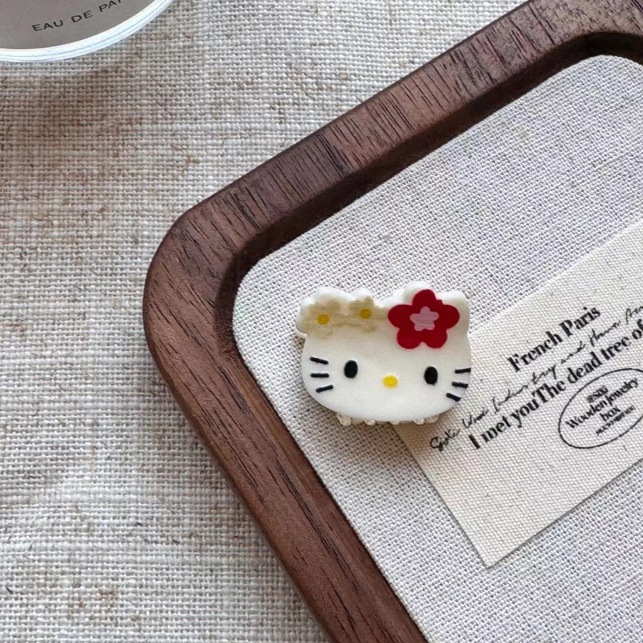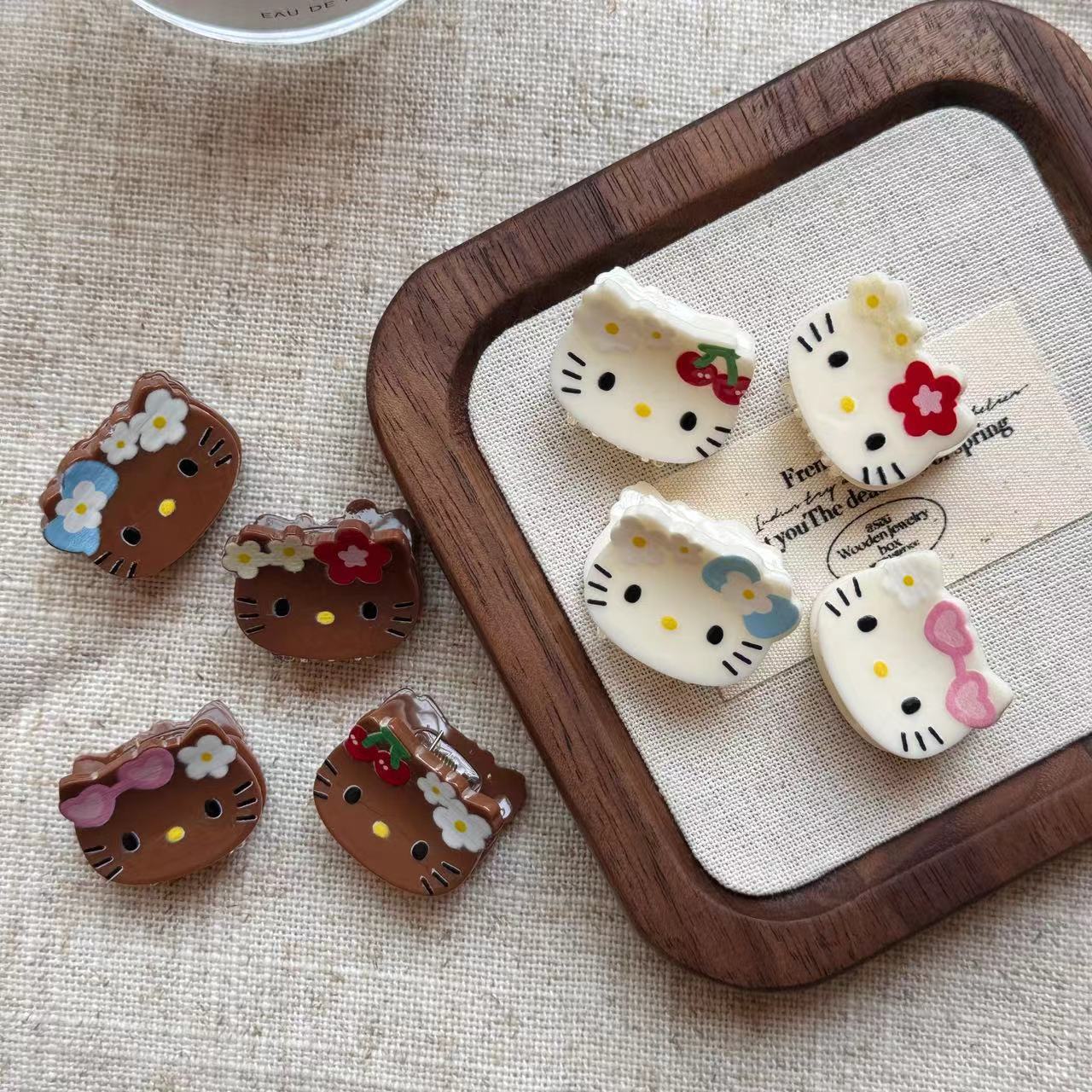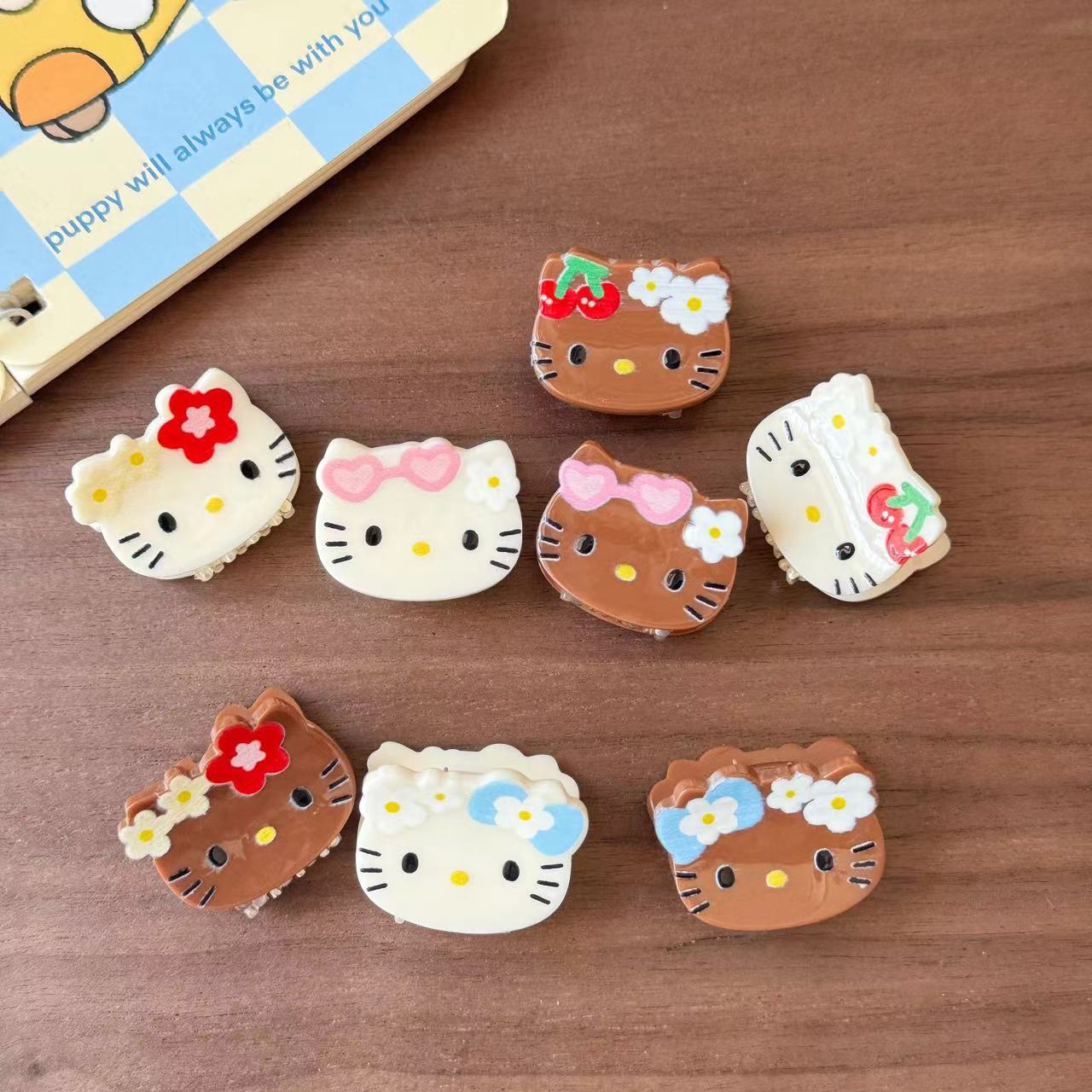 빈티지 블랙 가죽 Kt 고양이 미니 작은 잡아 클립 달콤한 소녀의 하트 헤어 그랩 뱅 클립 일본 귀여운 만화 헤드웨어 여성