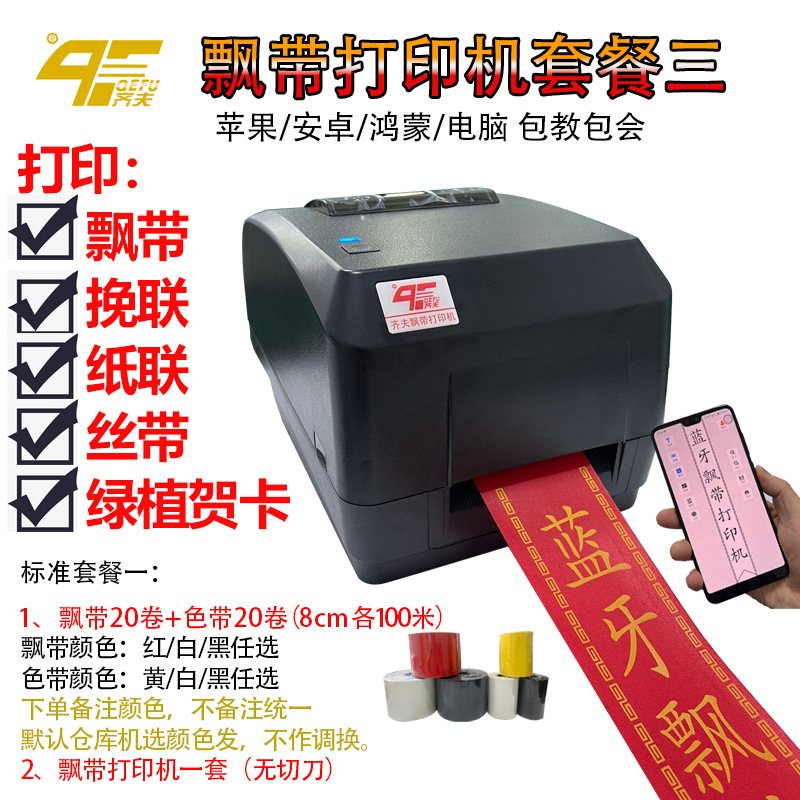 휴대 전화 블루투스 리본 프린터 꽃 가게 elegiac 리본 오프닝 화환 꽃 블루 배너 천 라벨 자동 커터스토어 가기