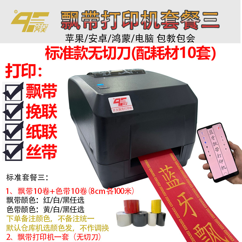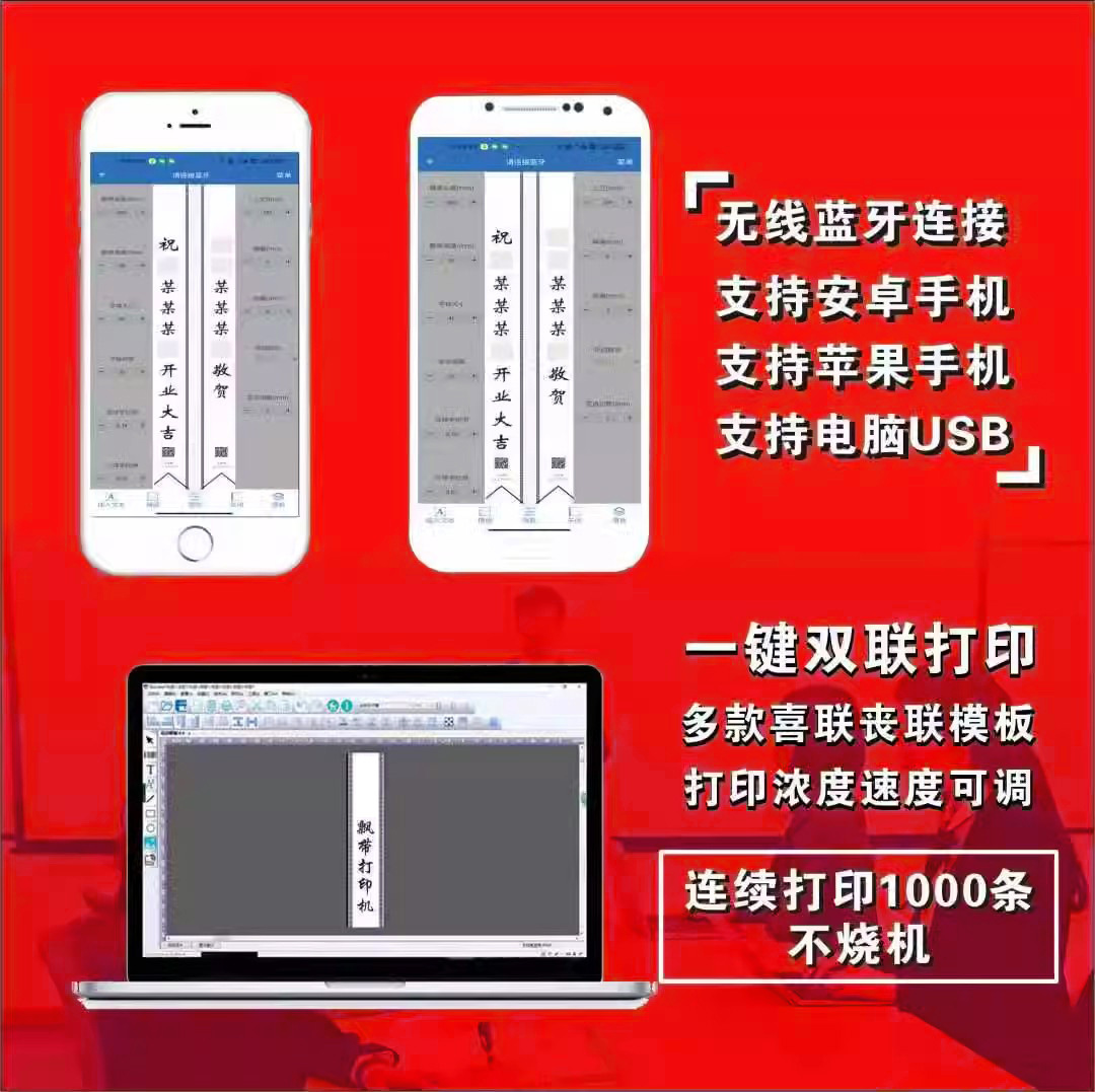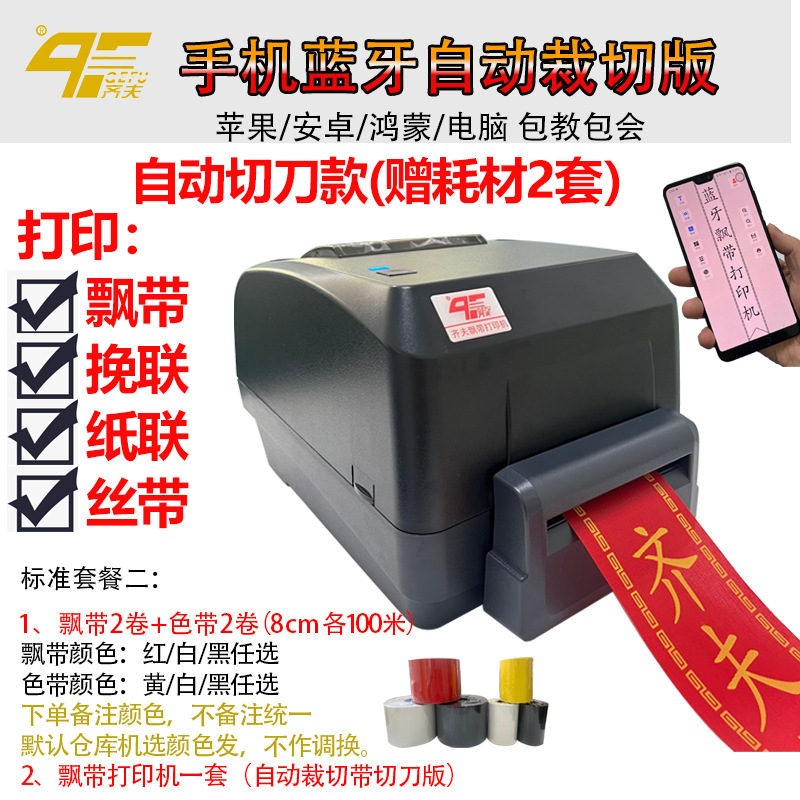 휴대 전화 블루투스 리본 프린터 꽃 가게 elegiac 리본 오프닝 화환 꽃 블루 배너 천 라벨 자동 커터