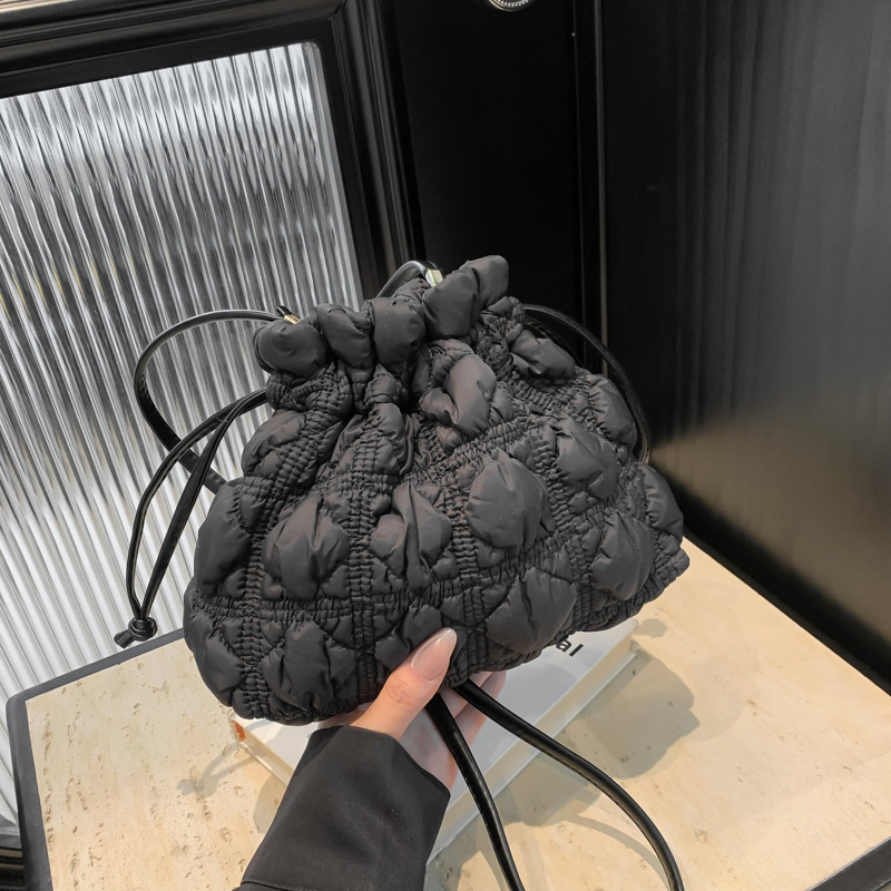 주름진 구름 모양 가방 여성용 다이아몬드 무늬 조임끈 버킷백 나일론 소형 가방 경량 숄더백 크로스백 트렌디 스타일