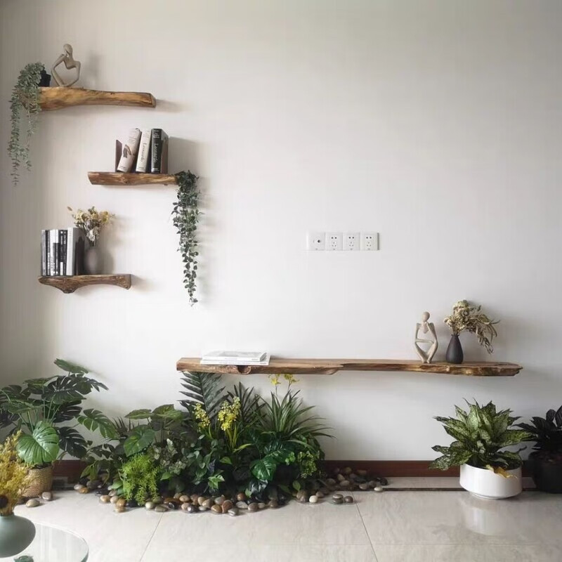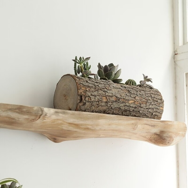 순수 원목 수납 선반 벽걸이형 천연 목재 선반 불규칙한 나무판 특수형 디스플레이 선반 벽걸이형