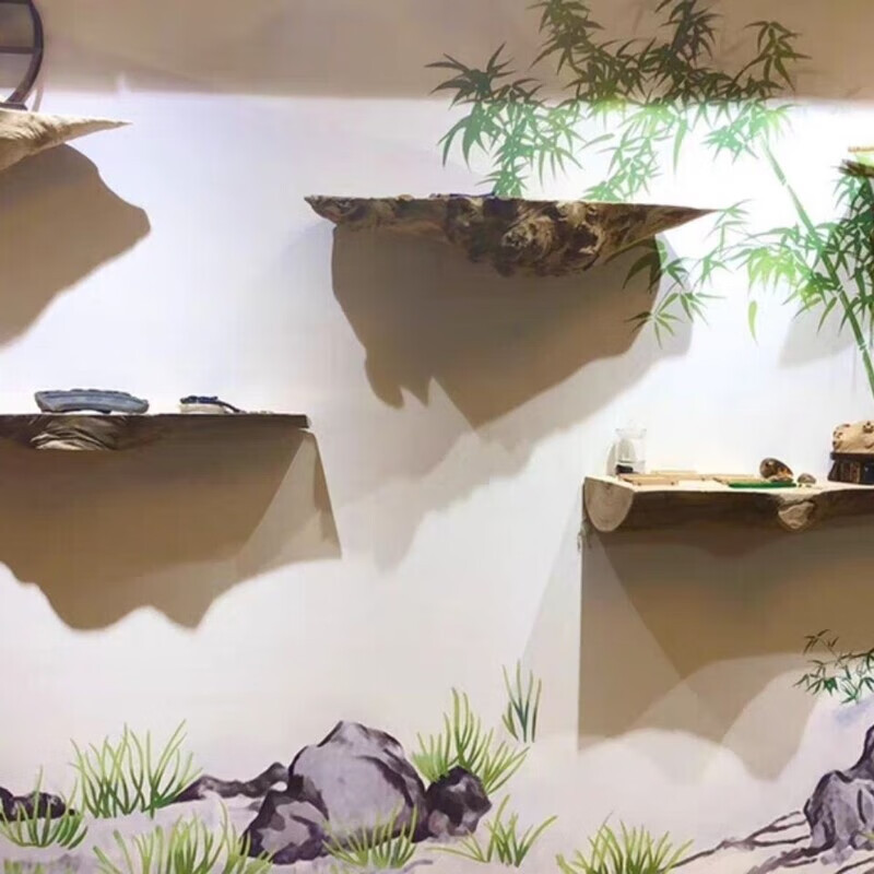 순수 원목 수납 선반 벽걸이형 천연 목재 선반 불규칙한 나무판 특수형 디스플레이 선반 벽걸이형스토어 가기