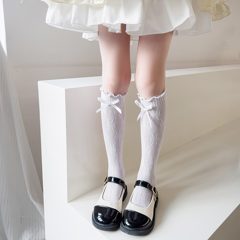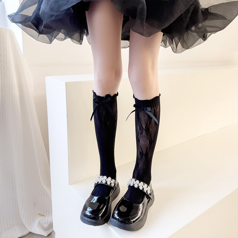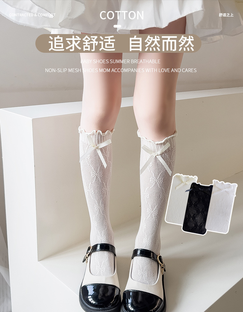 25 여름 메쉬 얇은 여자 양말 활 로리타 곰팡이 긴 튜브 공주 양말 어린이 중간 튜브 양말