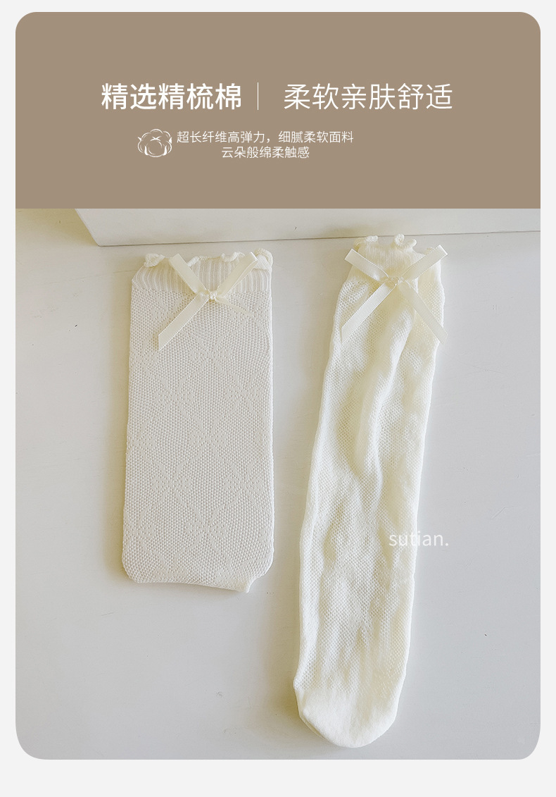 25 여름 메쉬 얇은 여자 양말 활 로리타 곰팡이 긴 튜브 공주 양말 어린이 중간 튜브 양말스토어 가기