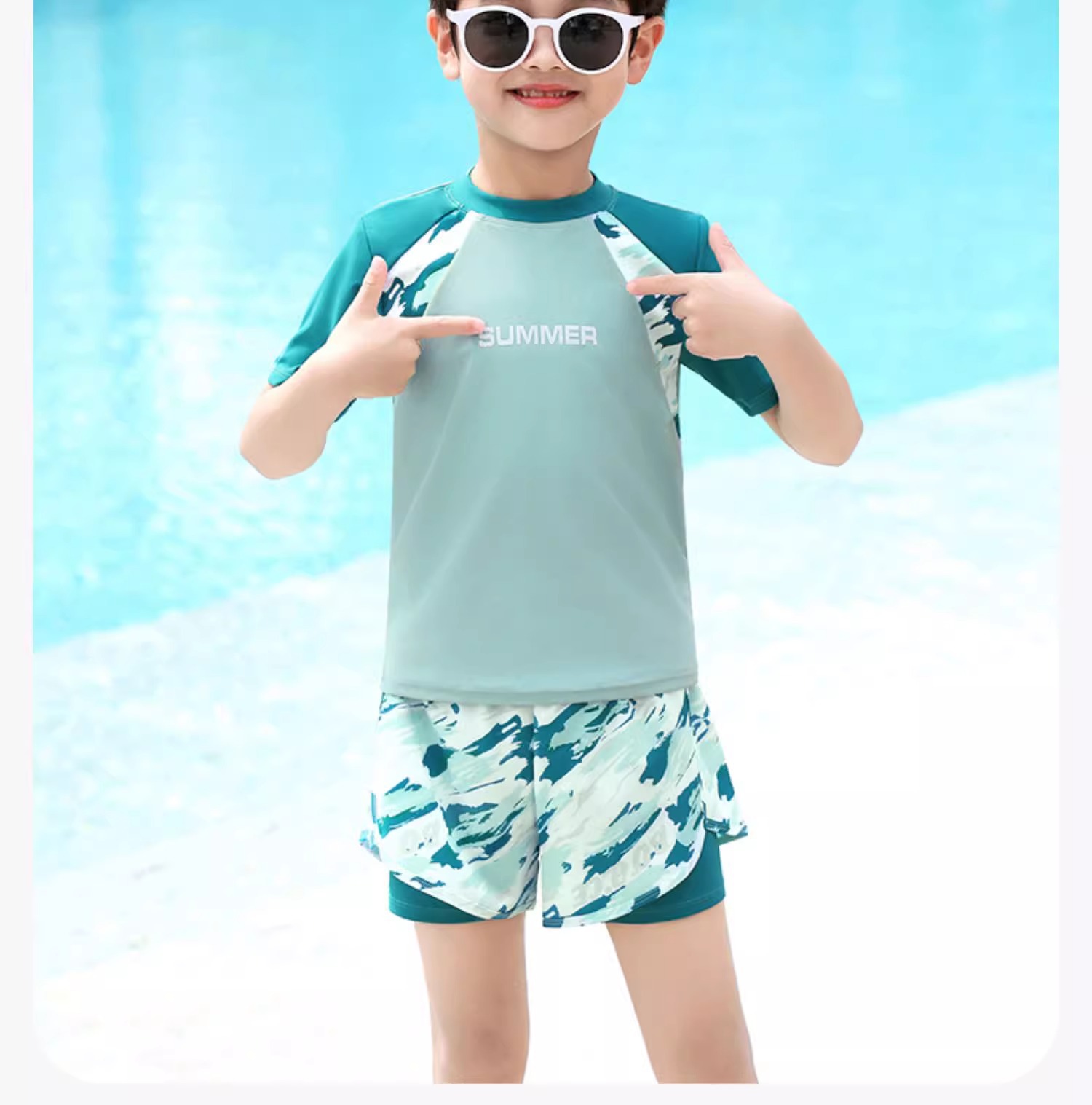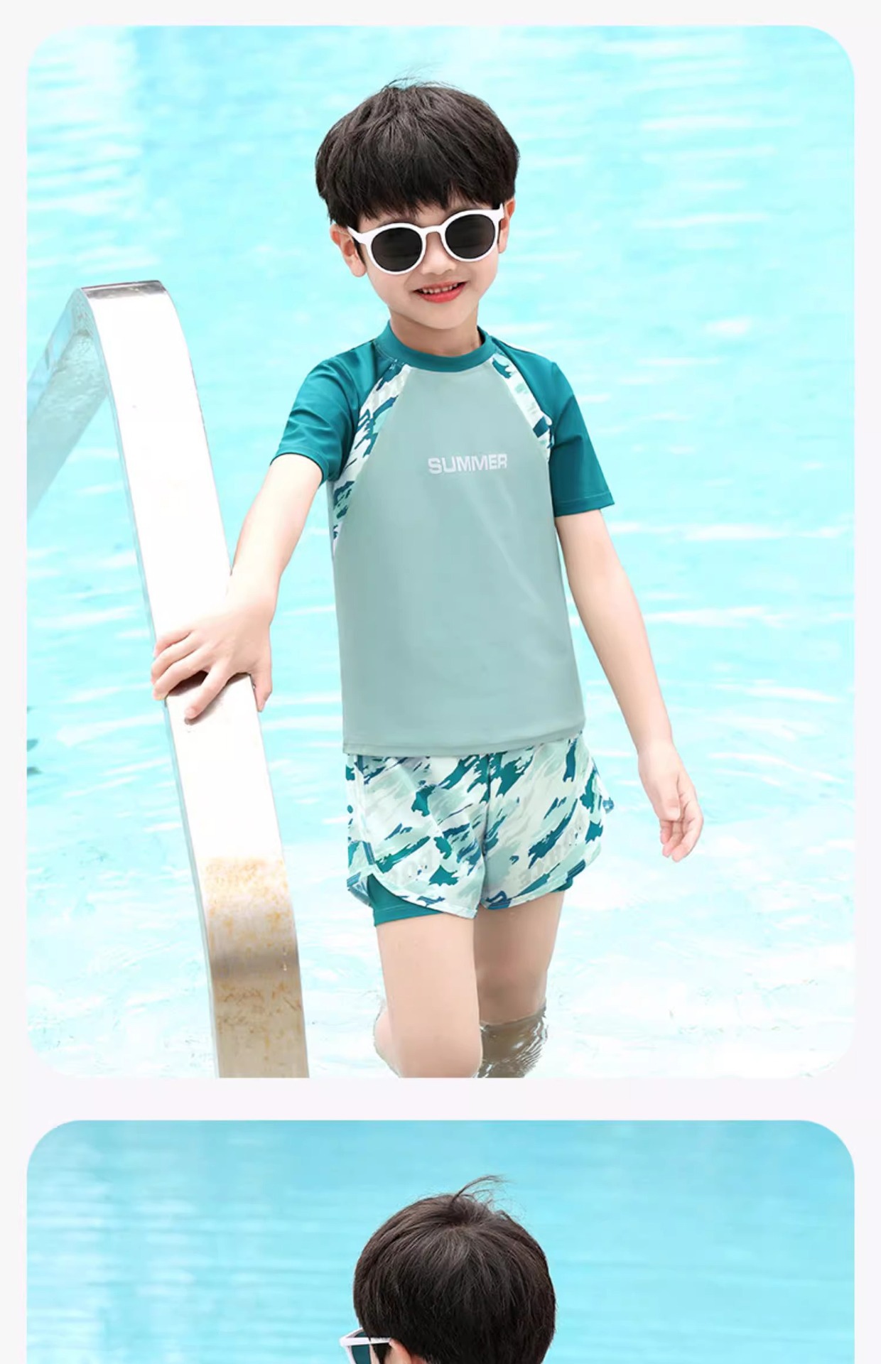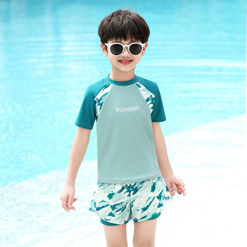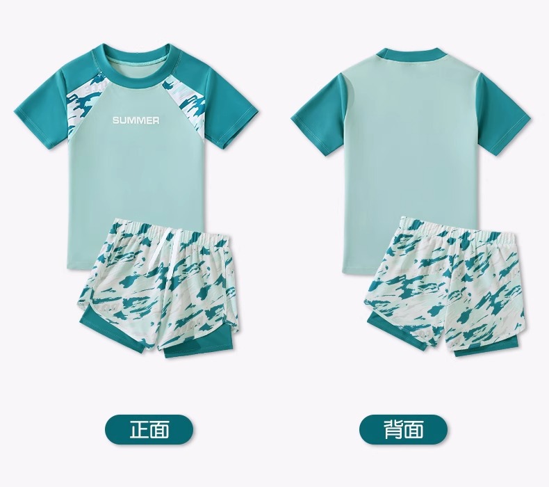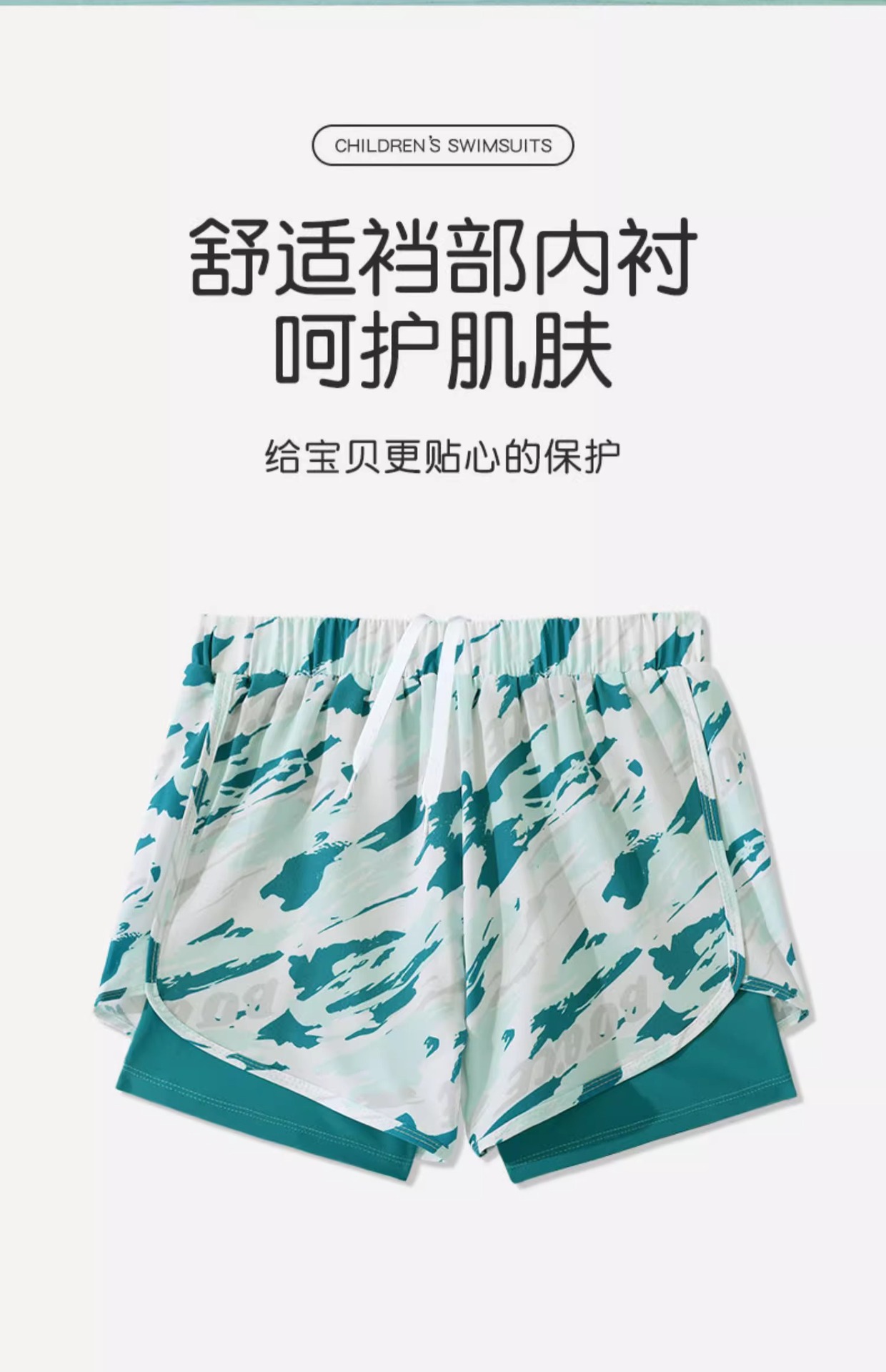 어린이 수영복 여름 새로운 스타일 분할 더블 레이어 안티 당혹감 유행 인쇄 온천 수영복 중 큰 어린이 및 청소년