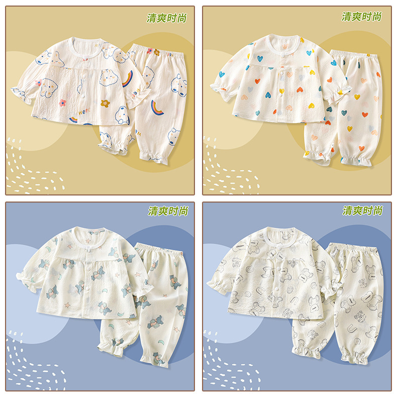 여성용 여름 캐주얼 편안한 홈 의류 세트 어린이 귀여운 긴팔 에어컨 의류 파자마 풀오버 얇은
