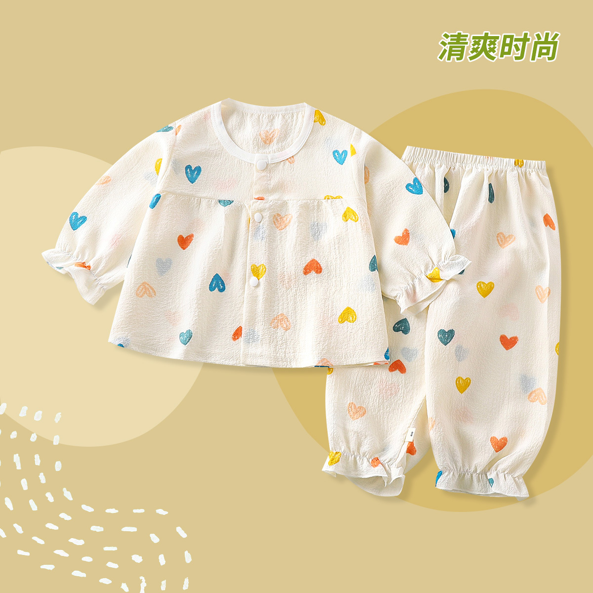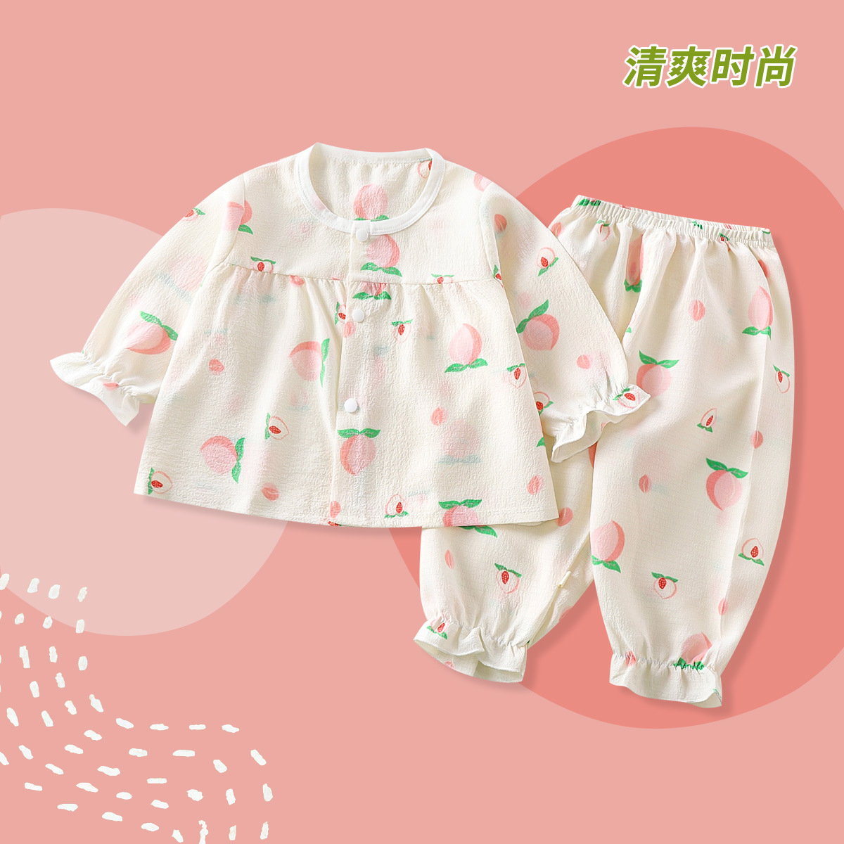 여성용 여름 캐주얼 편안한 홈 의류 세트 어린이 귀여운 긴팔 에어컨 의류 파자마 풀오버 얇은스토어 가기