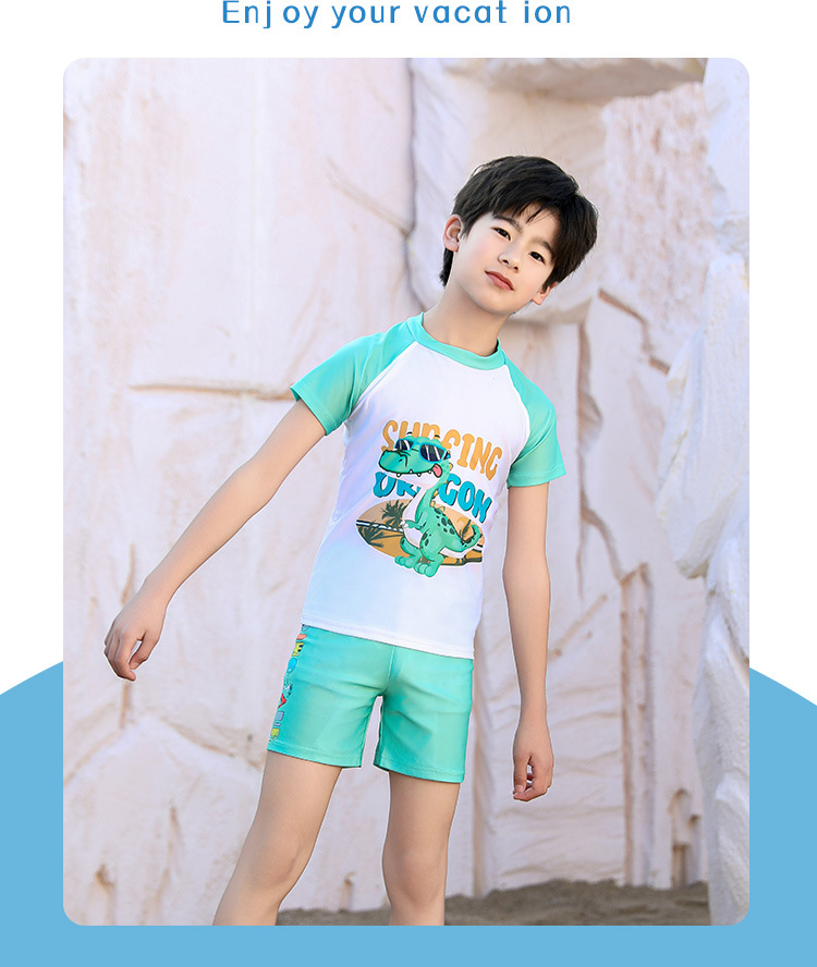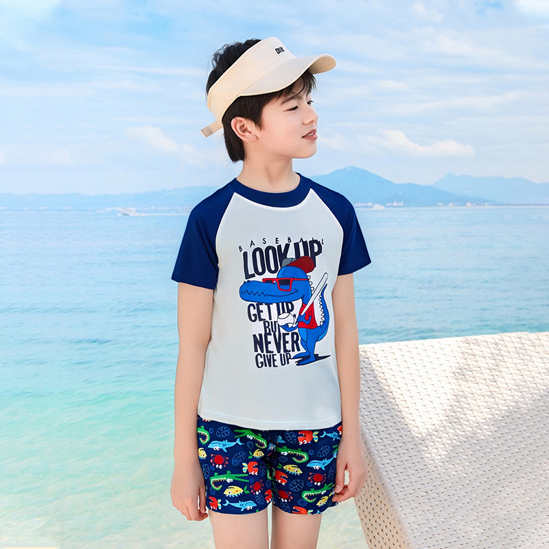 어린이 수영복 여름 새 소년 패션 만화 공룡 분할 미디어와 빅 키즈 훈련 빠른 건조 소년 수영복