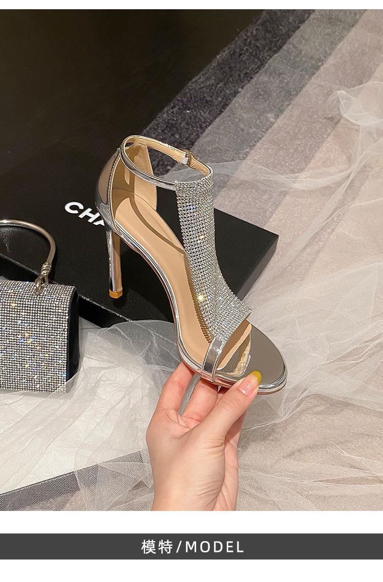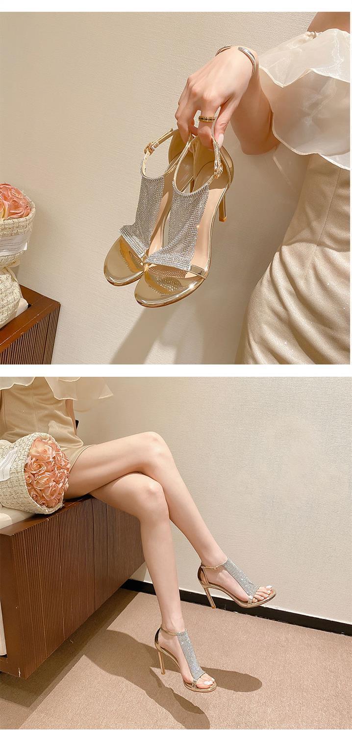 섹시한 T 자형 얇은 뒤꿈치 샌들, 라인스톤 올매치 2024 여름 새 스타일 오픈 발가락 연예인 여성 연회 원피스 하이힐 신발스토어 가기