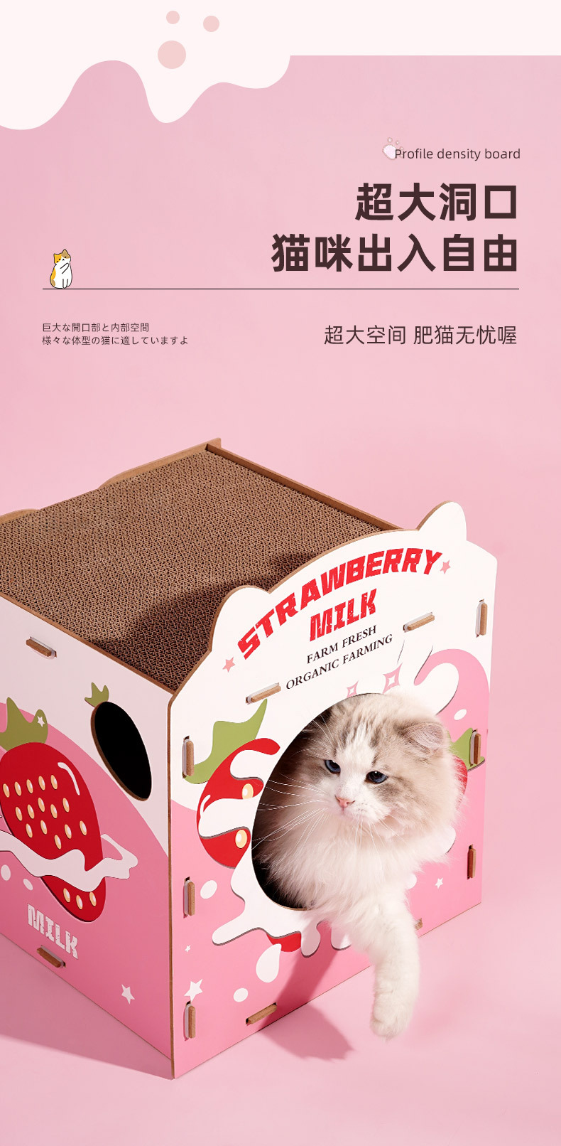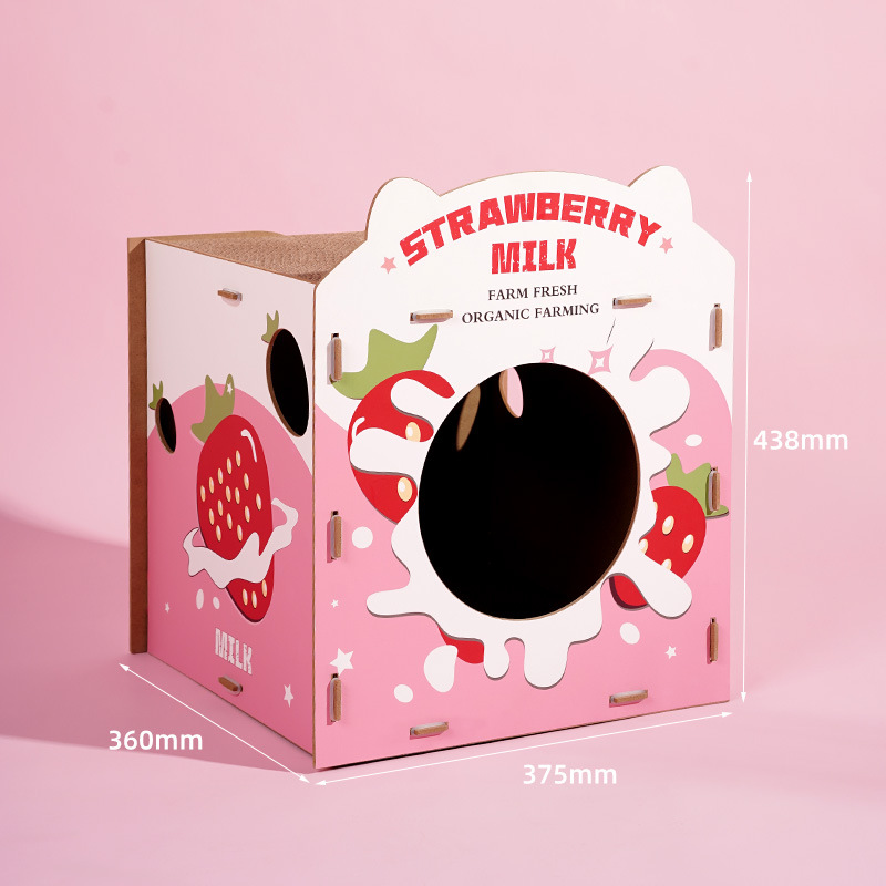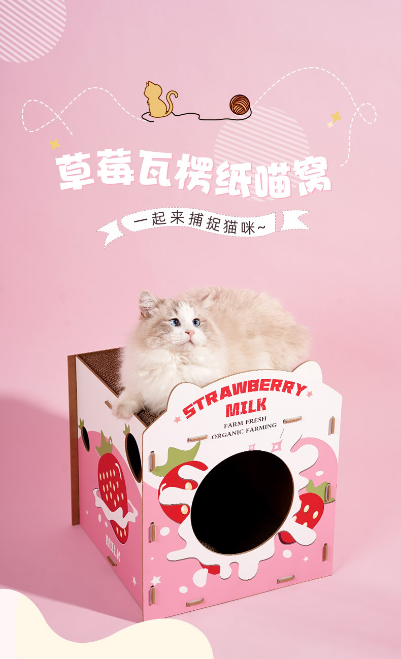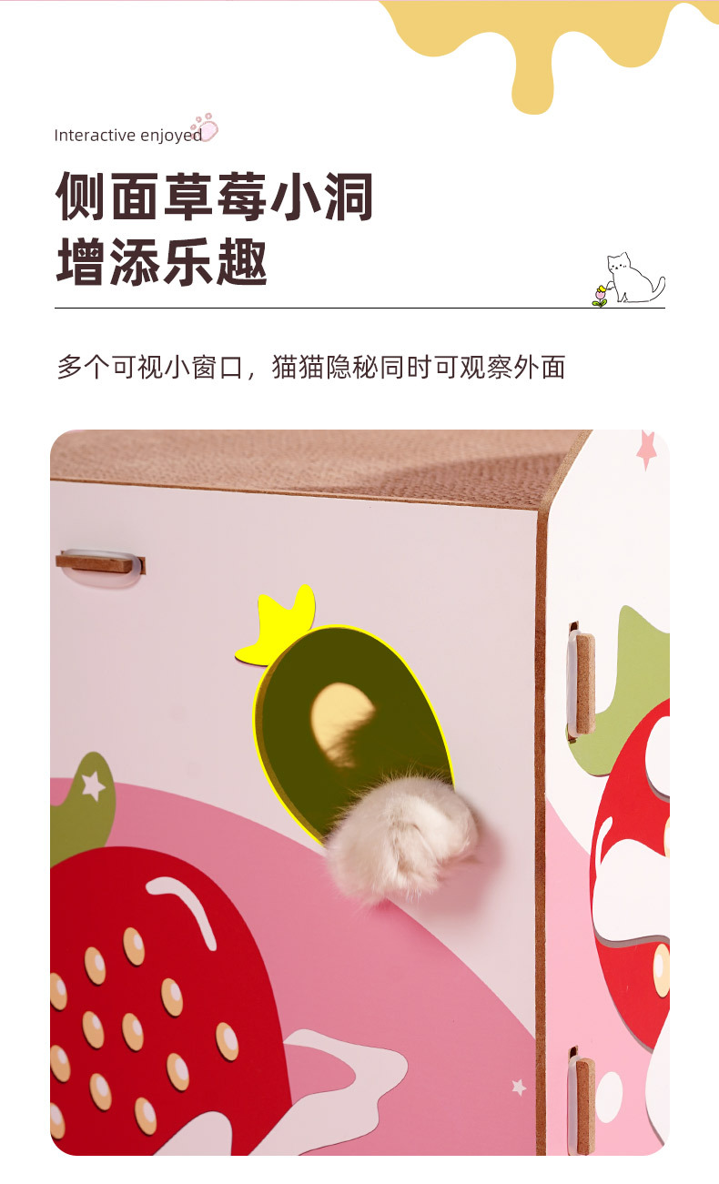 딸기 고양이 스크래치 보드 고양이 둥지 통합 고양이 연삭 발톱 잠자는 이중 나무 고양이 둥지 비 끈적 끈적한 머리 스크래치 보드를 교체 할 수 있습니다