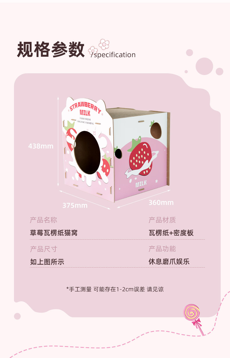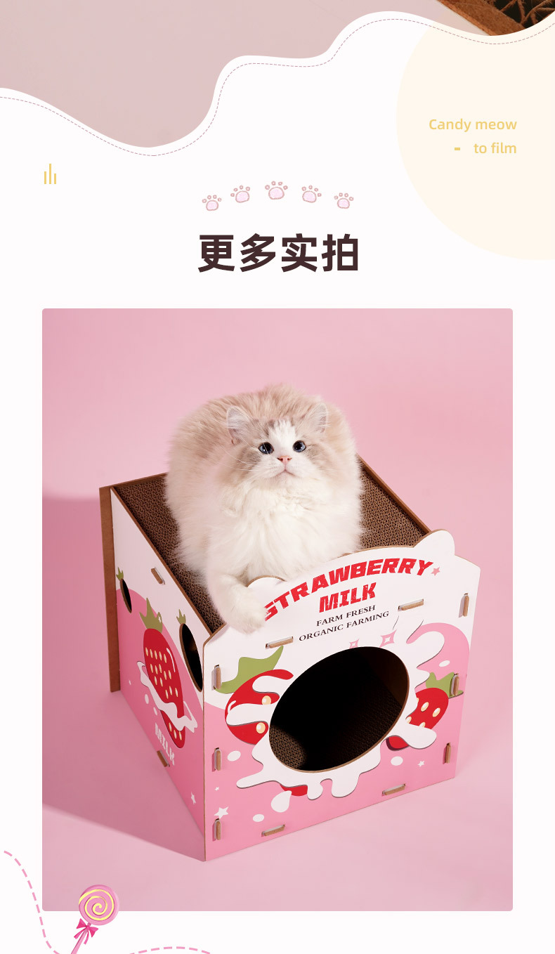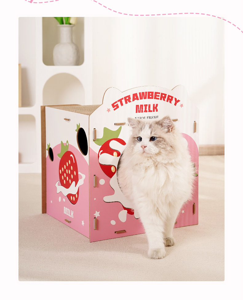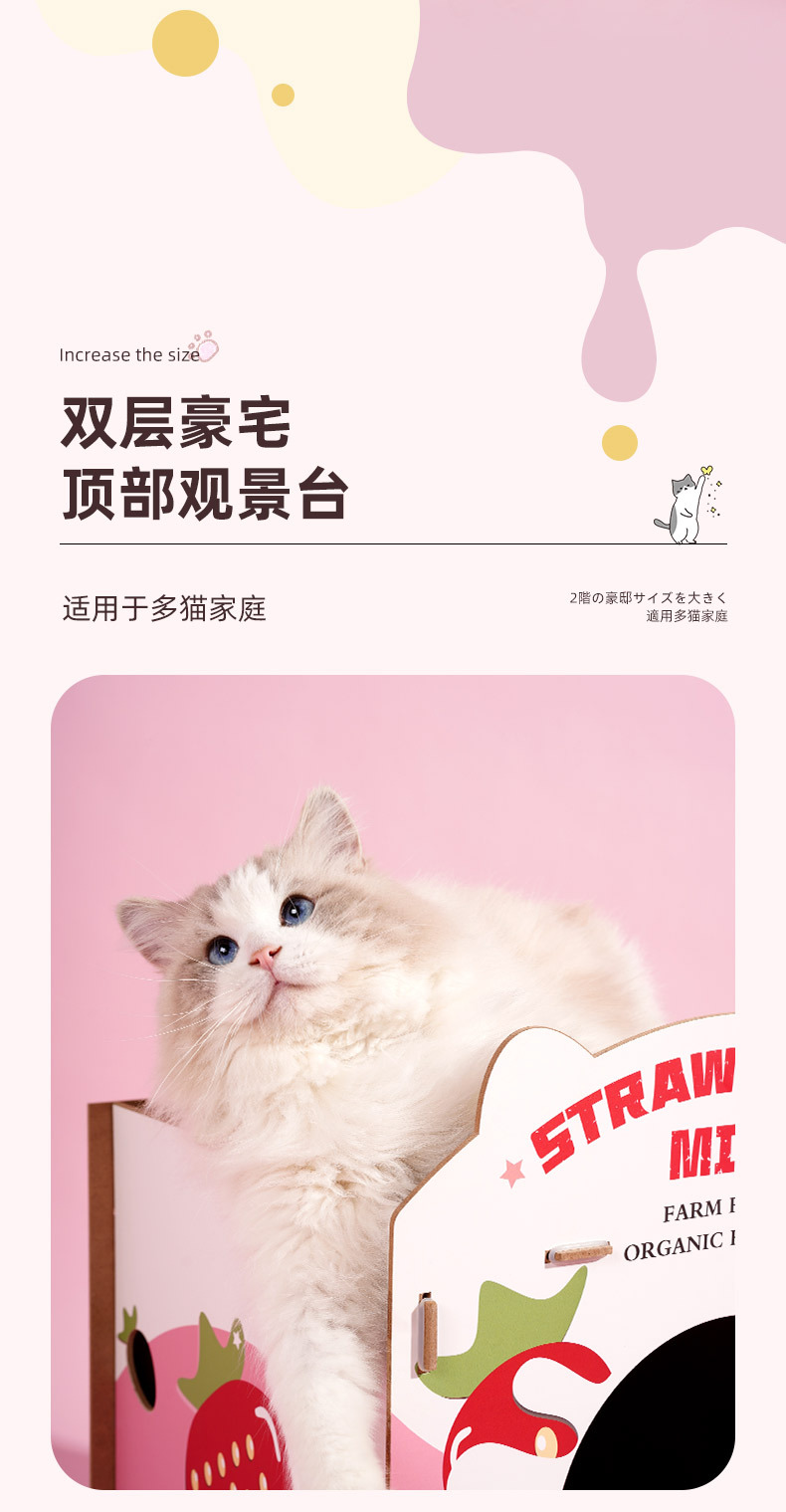 딸기 고양이 스크래치 보드 고양이 둥지 통합 고양이 연삭 발톱 잠자는 이중 나무 고양이 둥지 비 끈적 끈적한 머리 스크래치 보드를 교체 할 수 있습니다