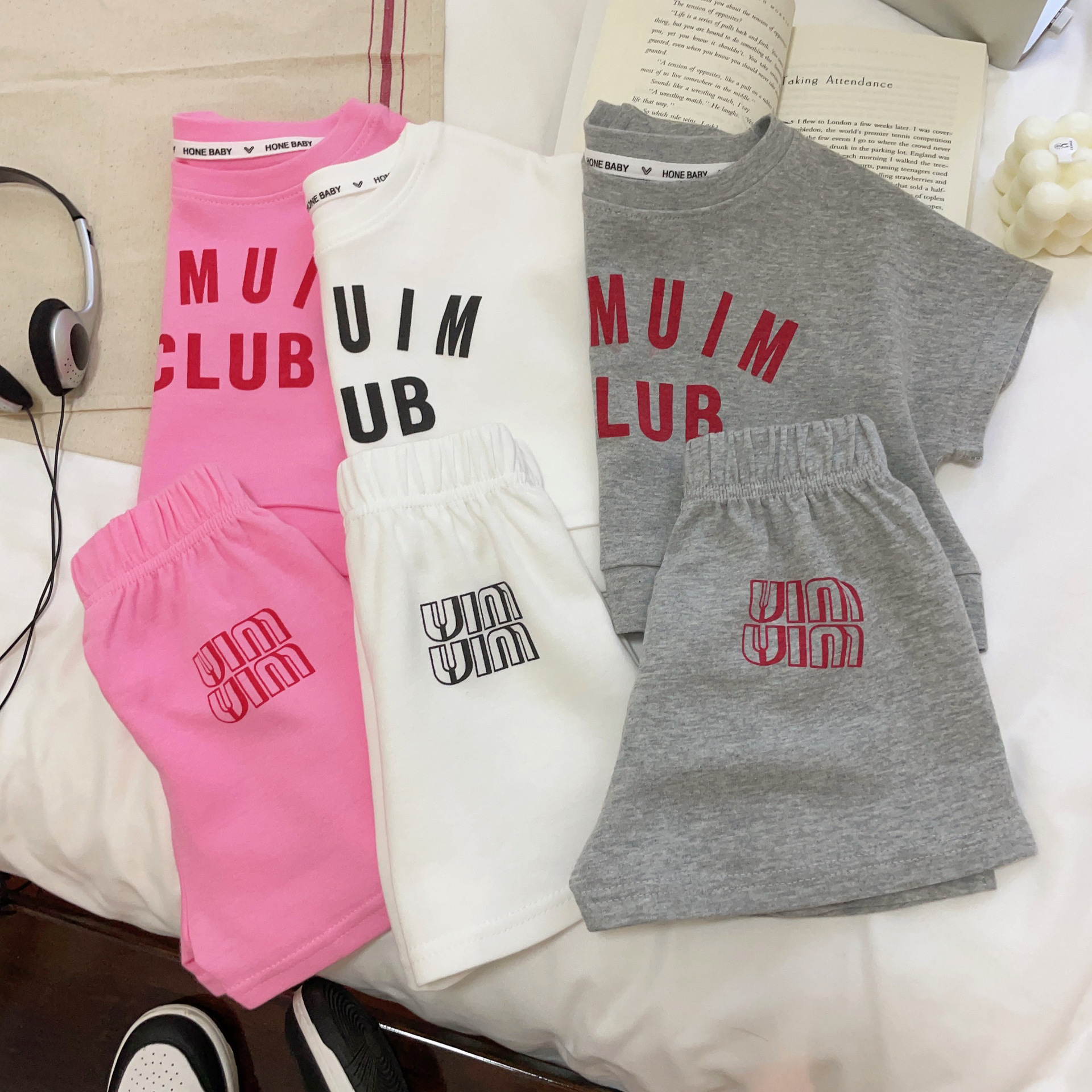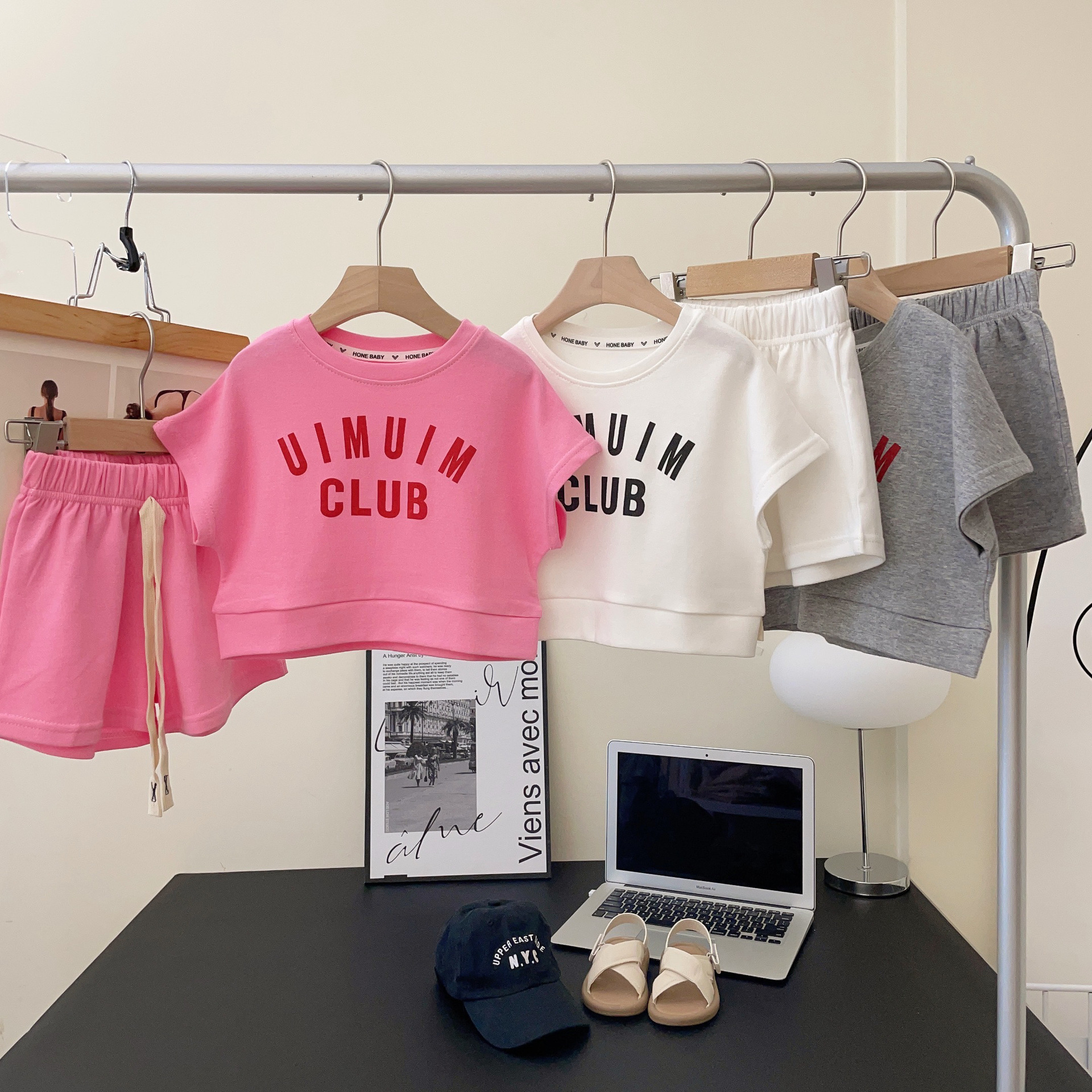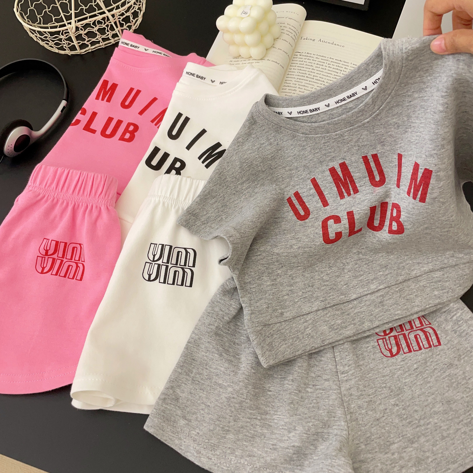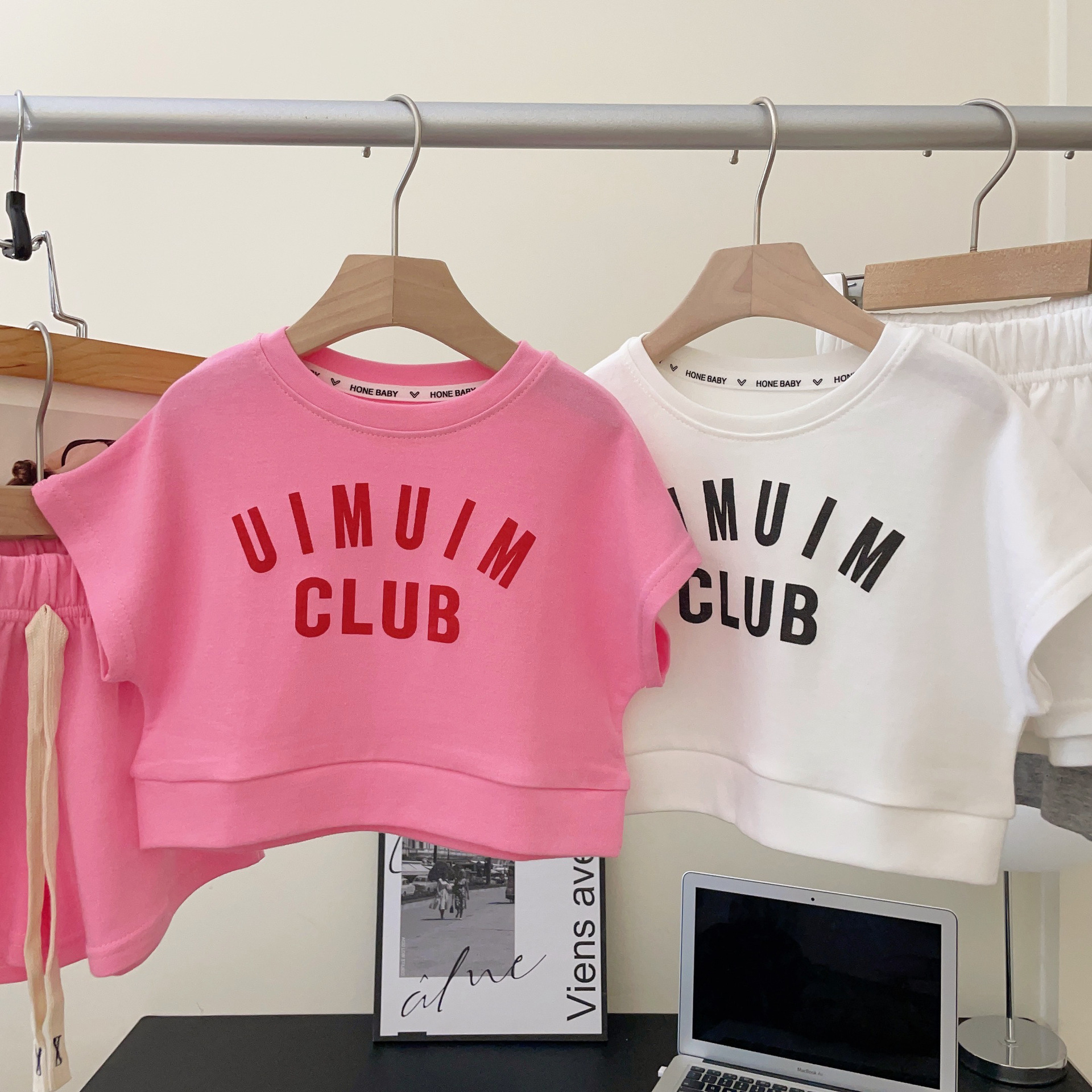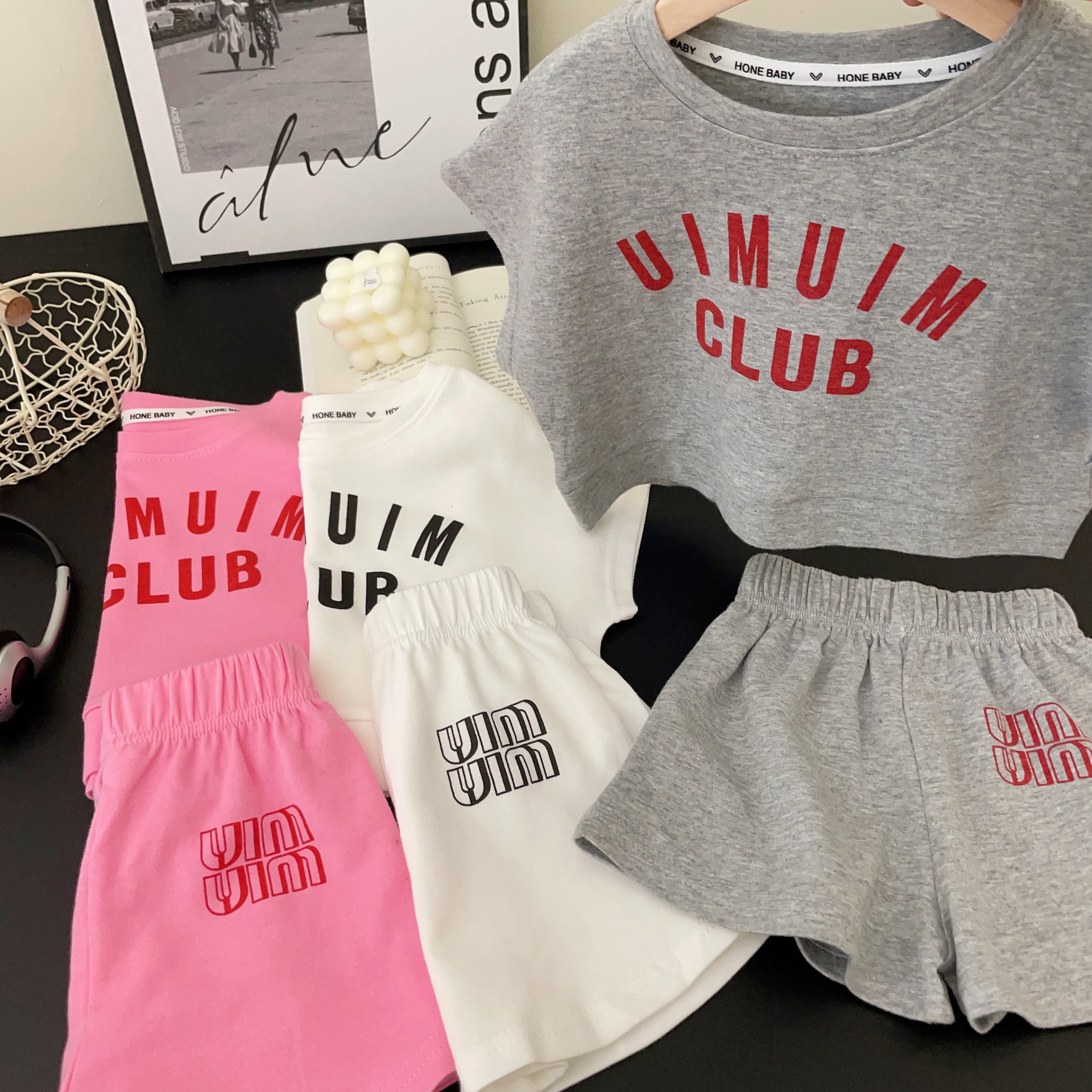 크림색 아동복 여아 세트 2024 신상 아동 운동복 유아 투피스 세트 스포츠 한국 스타일 트렌디 아동복스토어 가기