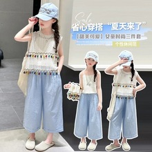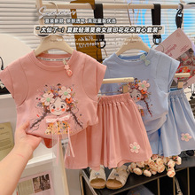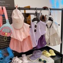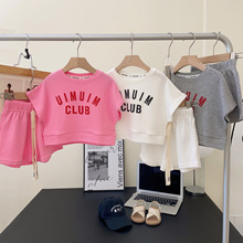 크림색 아동복 여아 세트 2024 신상 아동 운동복 유아 투피스 세트 스포츠 한국 스타일 트렌디 아동복