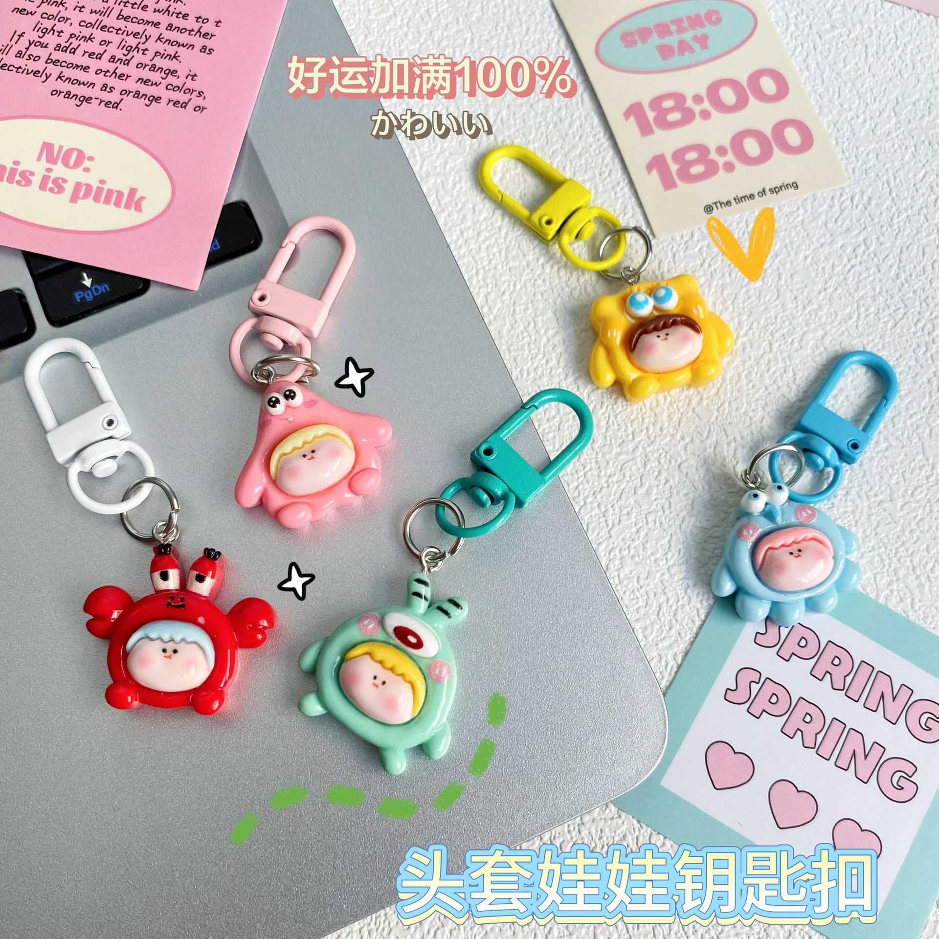 귀여운 헤드 기어 인형 키 체인 인 소녀 하트 만화 스폰지 밥 펜던트 원래 선물 가방 매달려 장식품스토어 가기