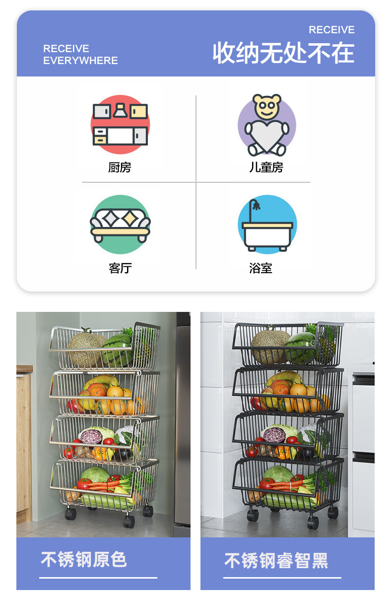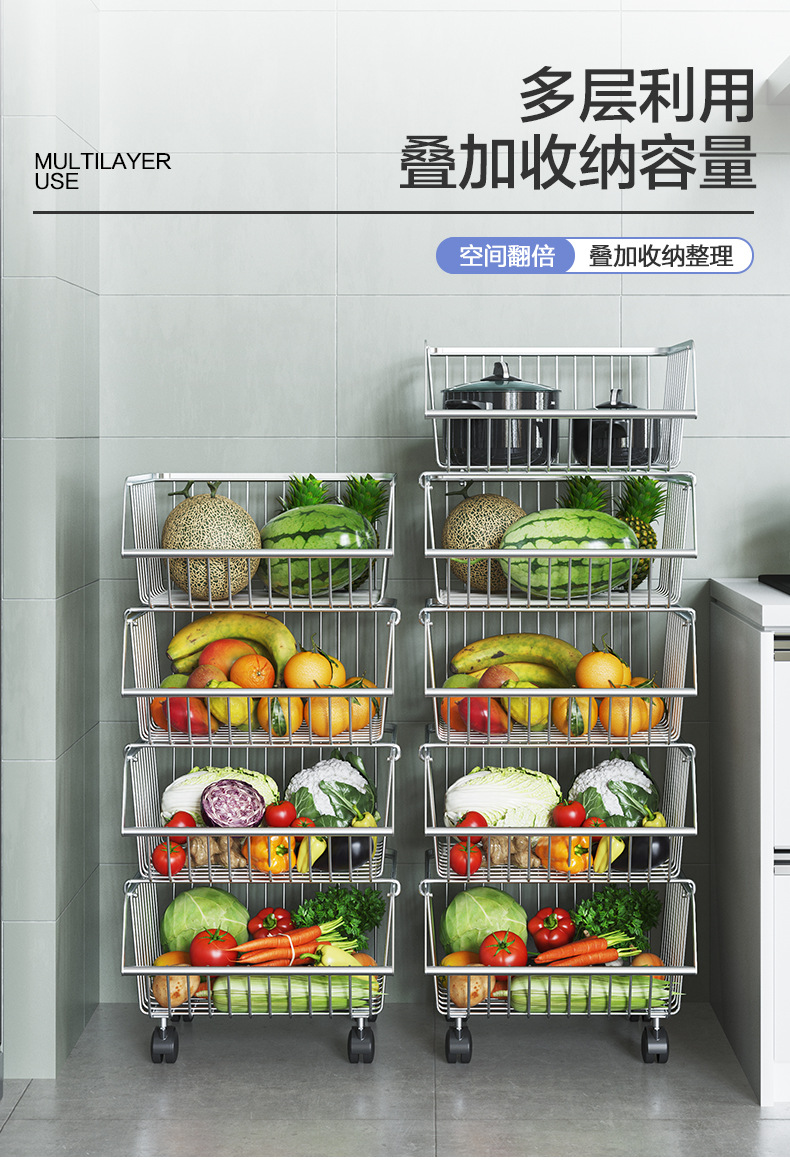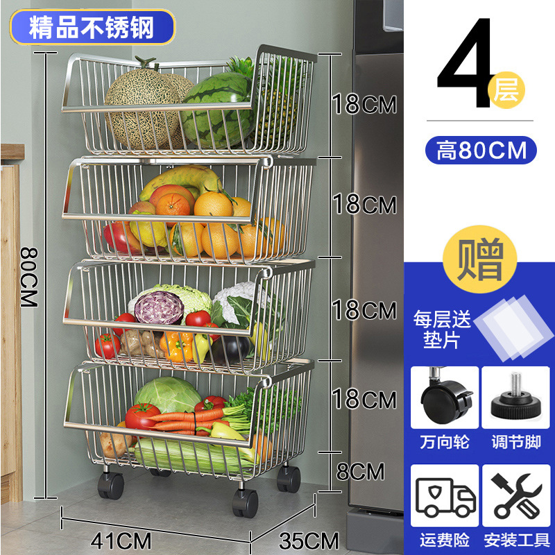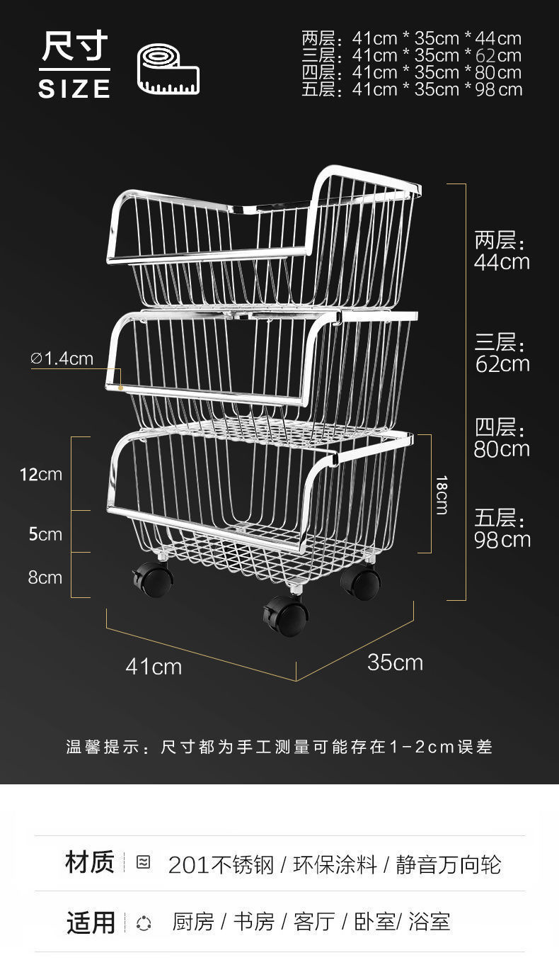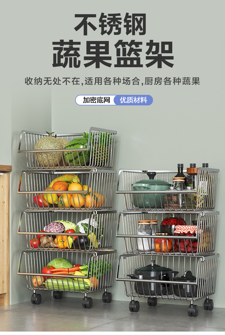 스테인레스 스틸 주방 저장 랙 과일 바구니 과일 및 야채 바구니 야채 랙 저장 랙 두꺼운 트롤리