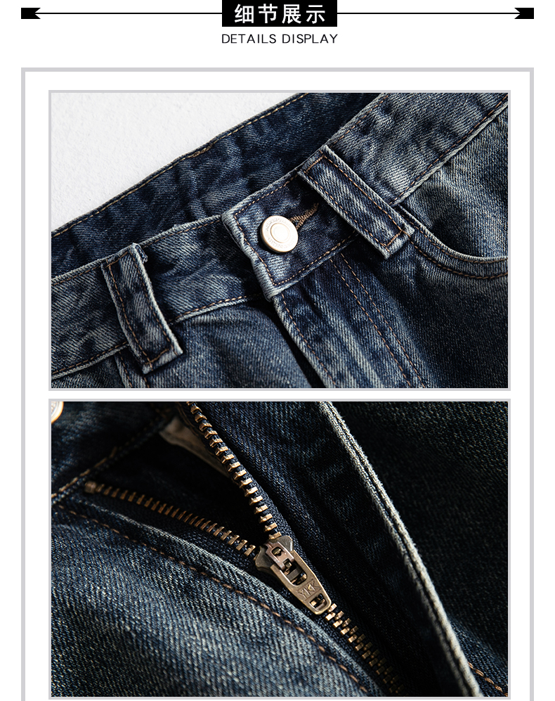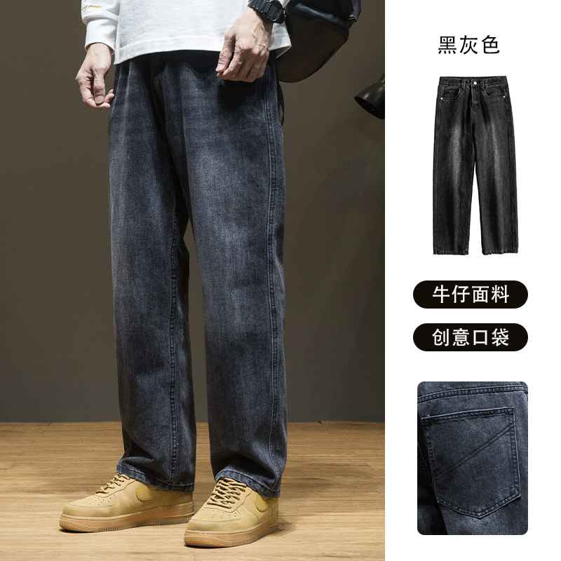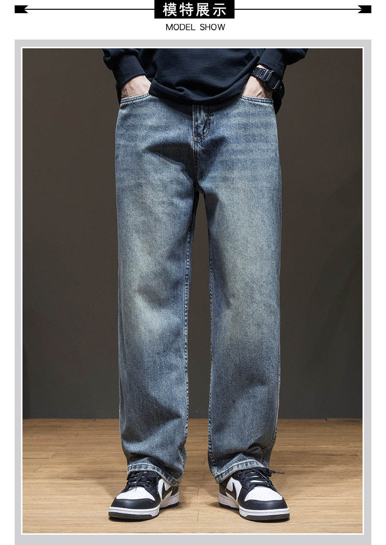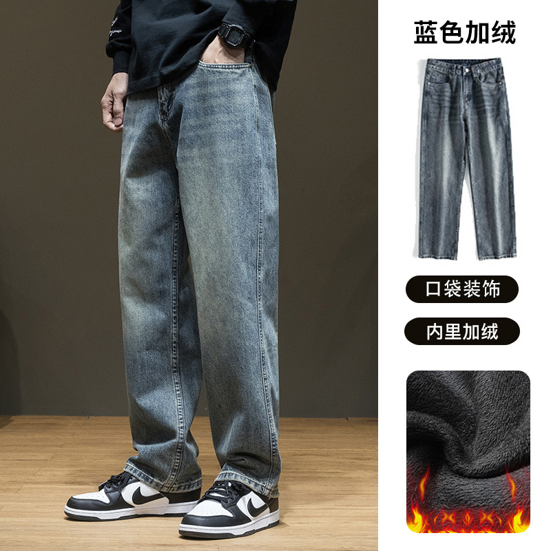 가을과 겨울 아메리칸 스타일 스트레이트 레트로 청바지 남성용 세탁 2024 가을 느슨한 플러스 사이즈 남성 기모 바지스토어 가기
