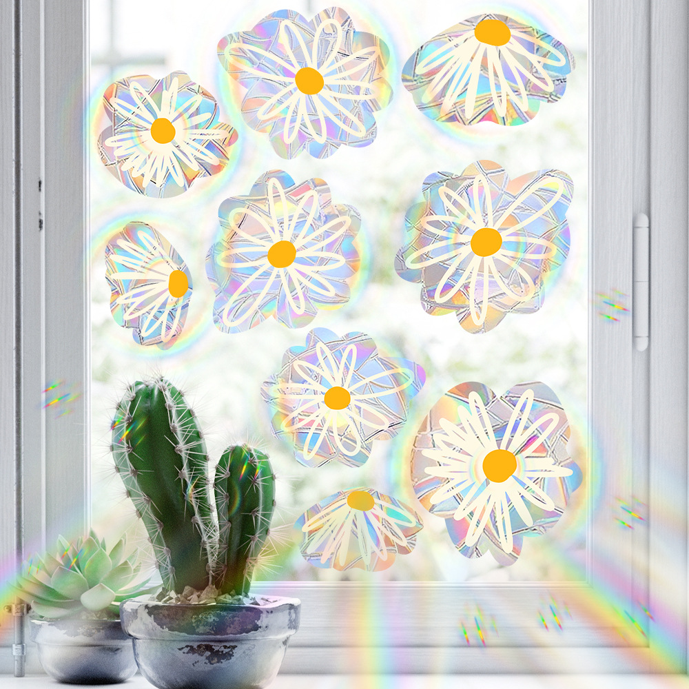 Yiyao XC2332 공장 직접 다채로운 여름 데이지 유리 스티커 쇼핑몰 창 햇빛 포수 정전기 스티커스토어 가기