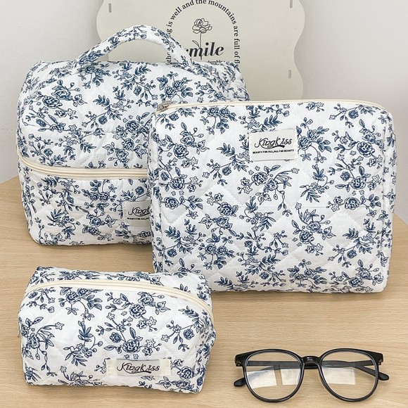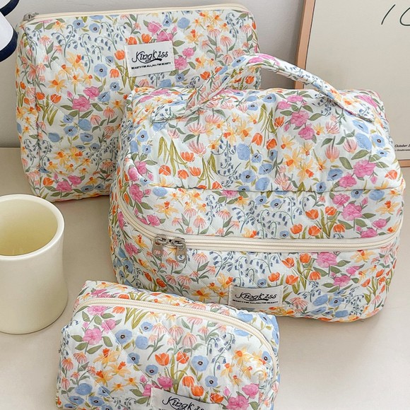 2024 새로운 대용량 작은 꽃 높은 가치 화장품 가방 휴대용 여행 휴대용 저장 가방 공장스토어 가기
