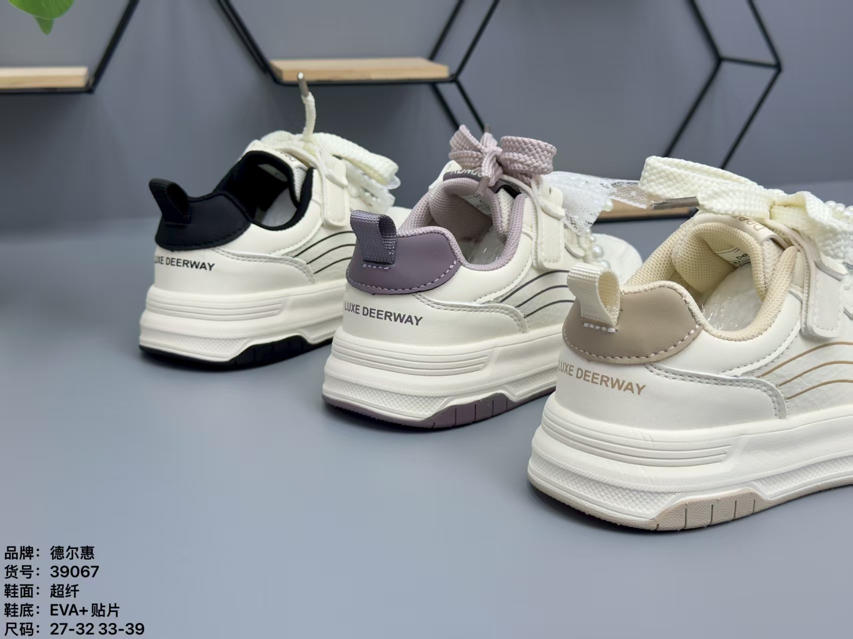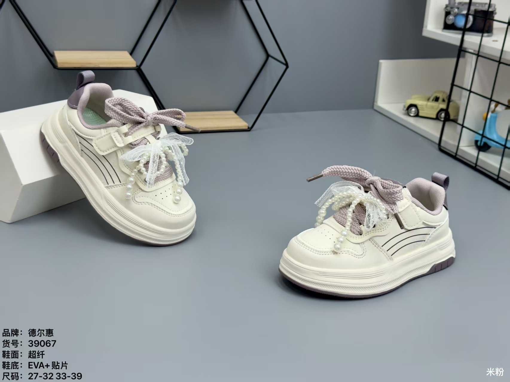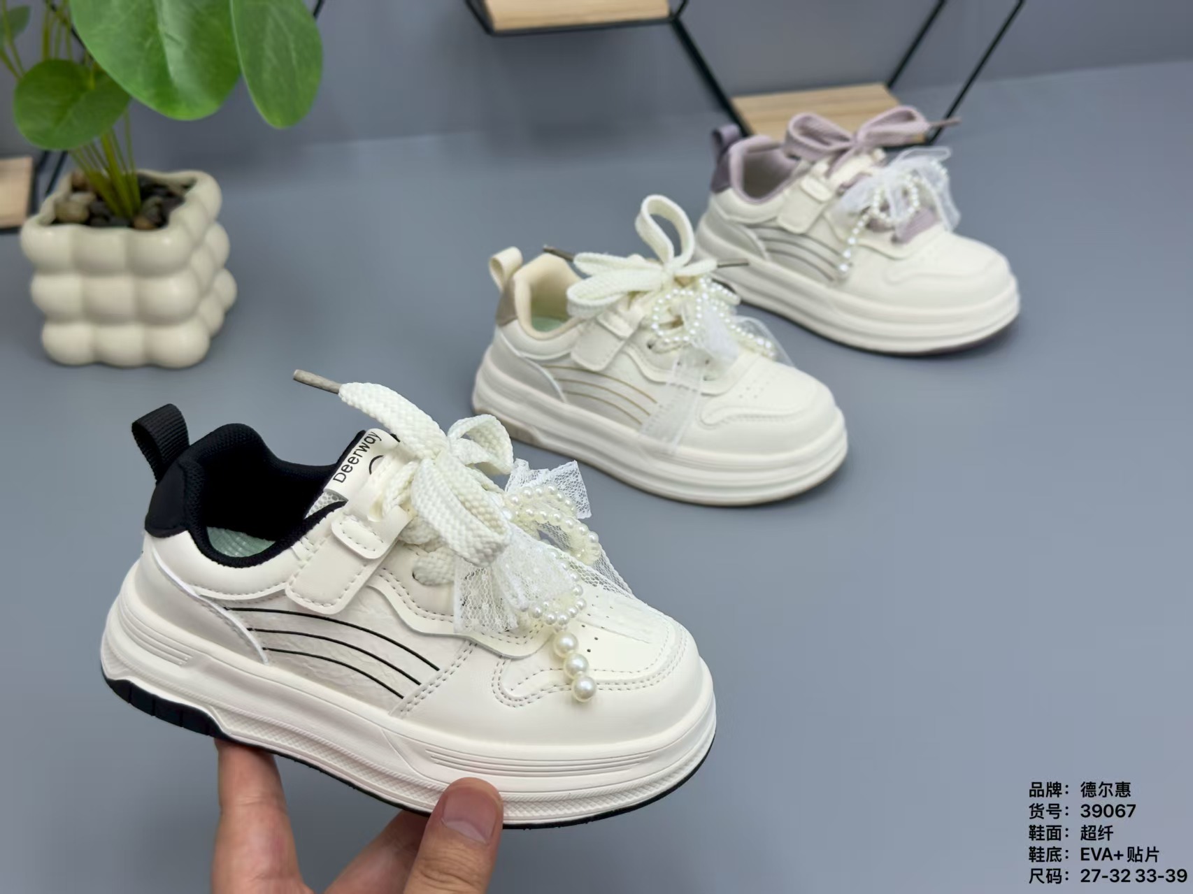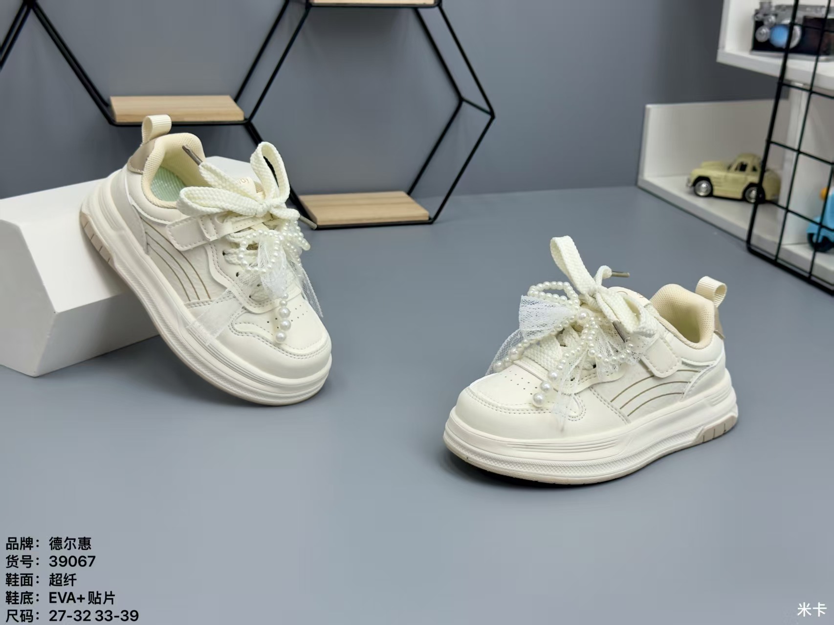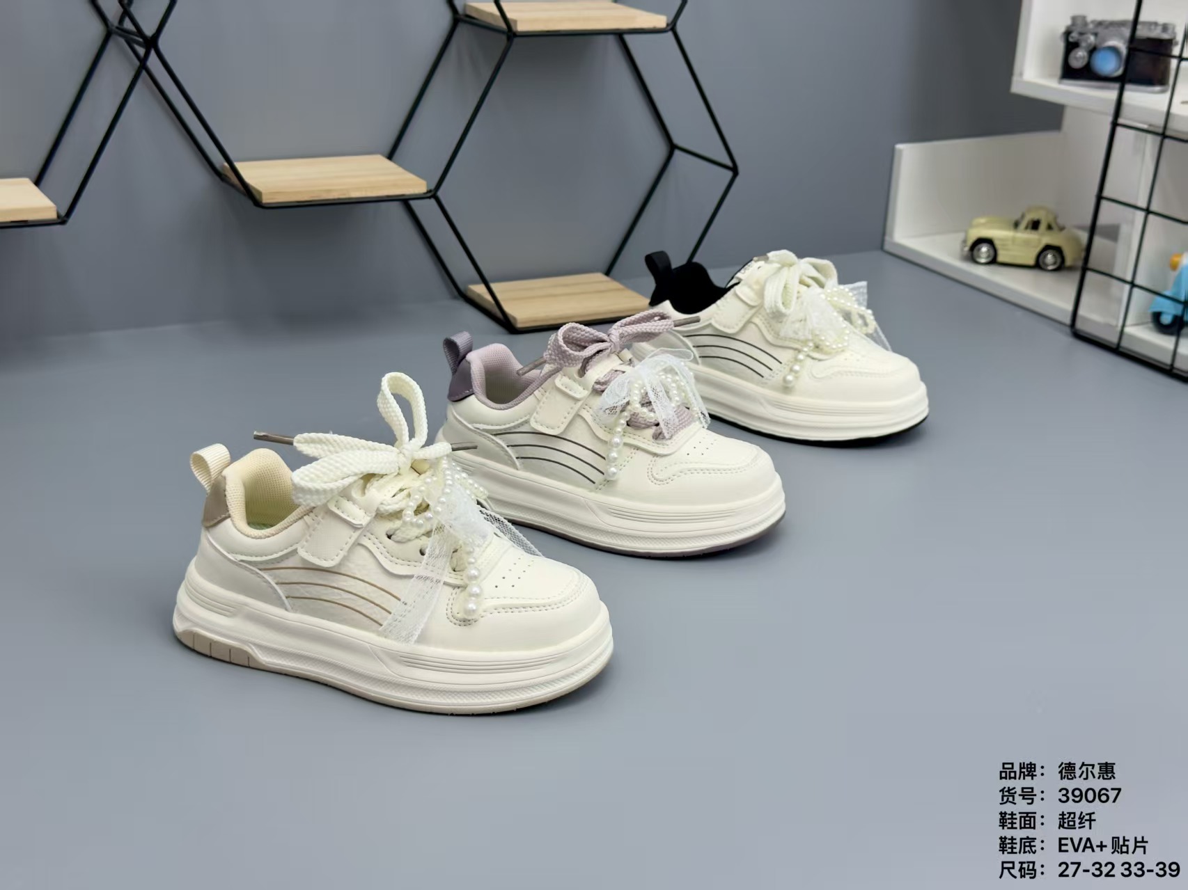 Delhui 2025 새로운 가을 어린이 신발 도매 소녀의 가벼운 밑창 캠퍼스 흰색 신발 제조 업체 직접 공급 39067