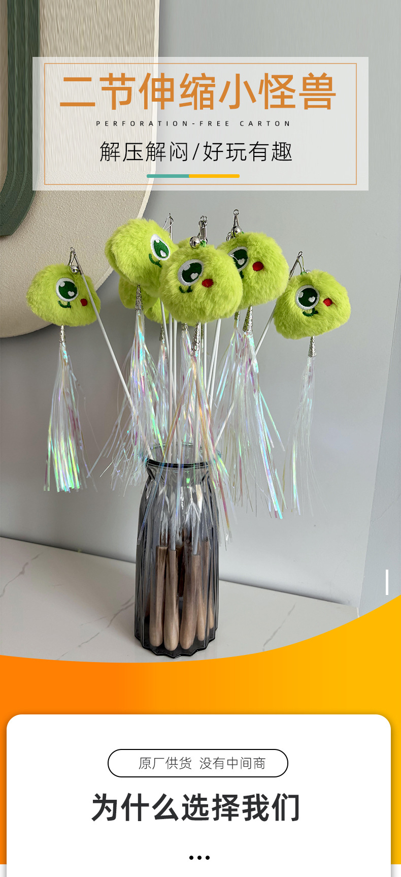 새로운 접이식 막대 고양이 놀이 막대, 꼬마 괴물 고양이 인터랙티브 장난감, 씹고 즐기는 2단 접이식 고양이 놀이 막대