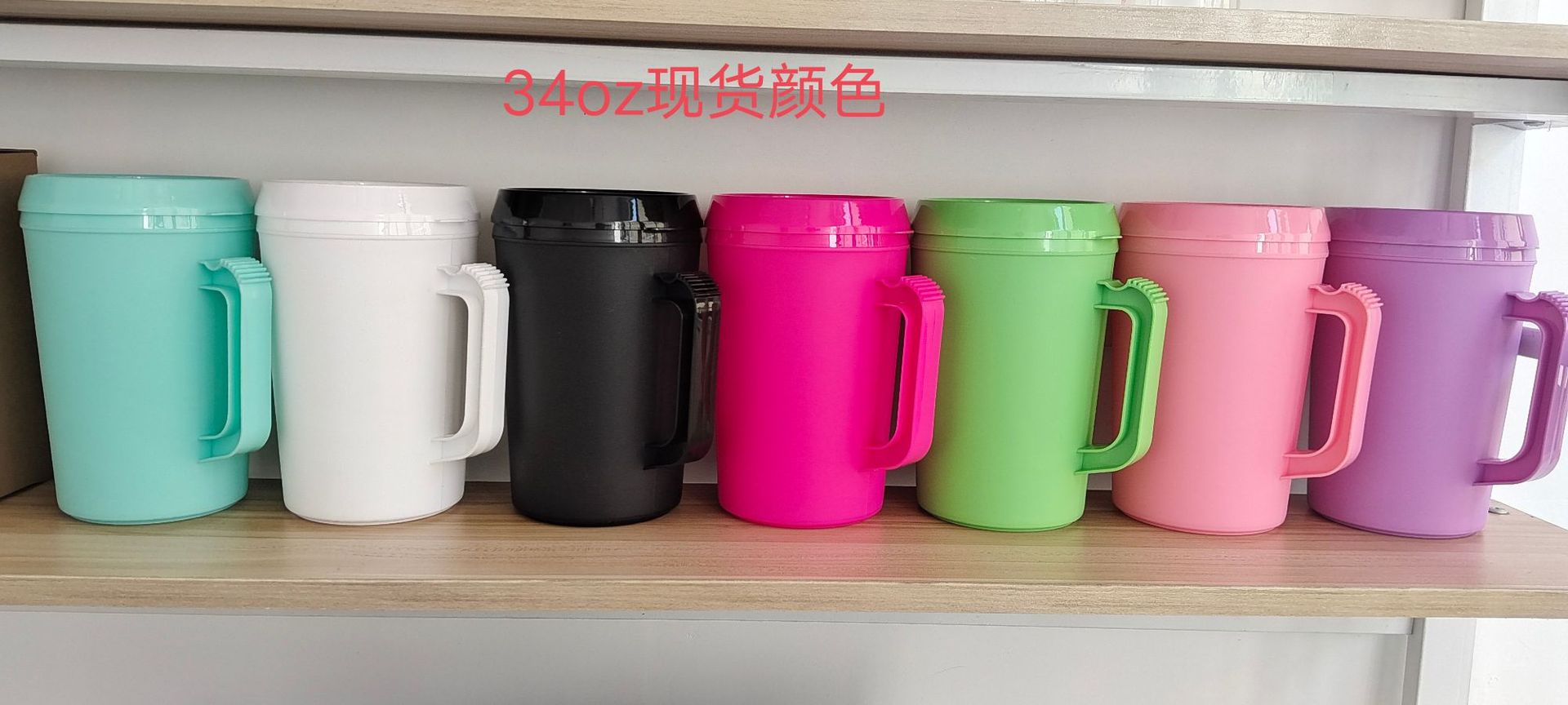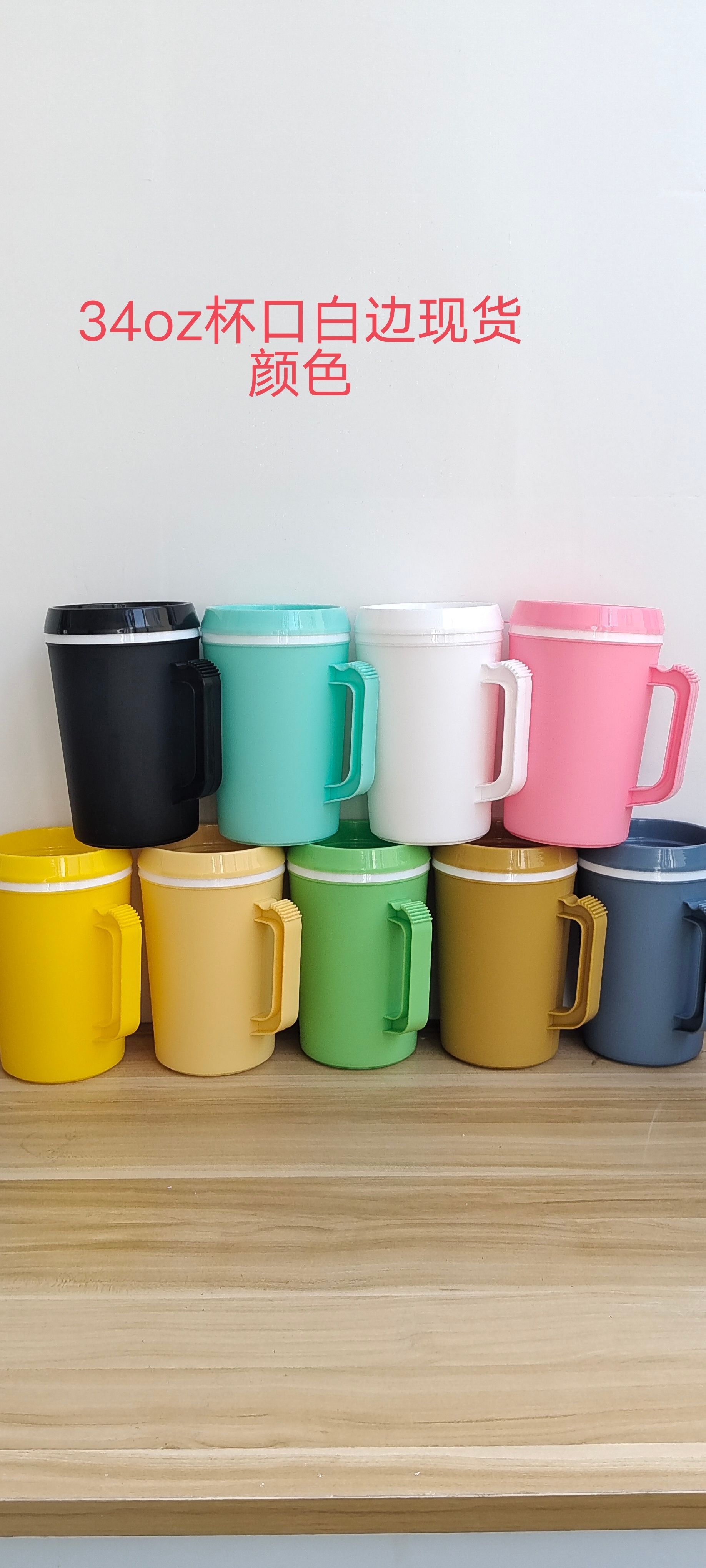 34OZ 미국 대용량 여행 컵 자동차 컵 PP 더블 레이어 손잡이 밀짚 플라스틱 컵 머그잔스토어 가기