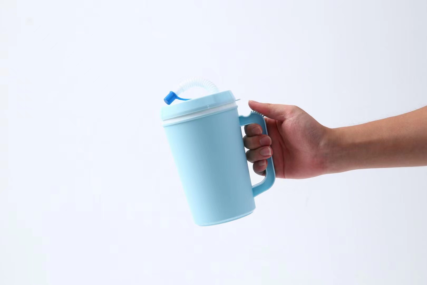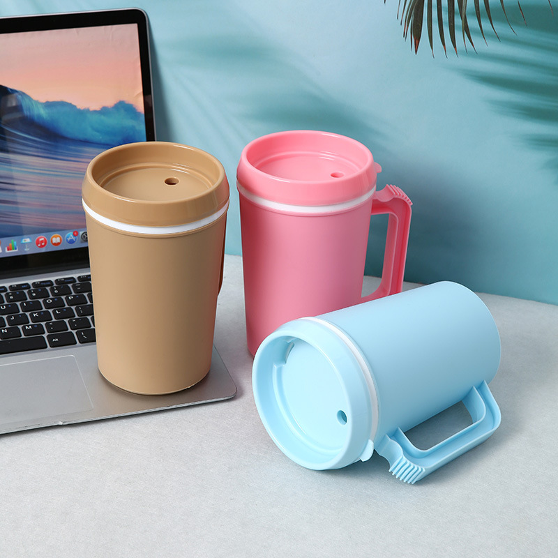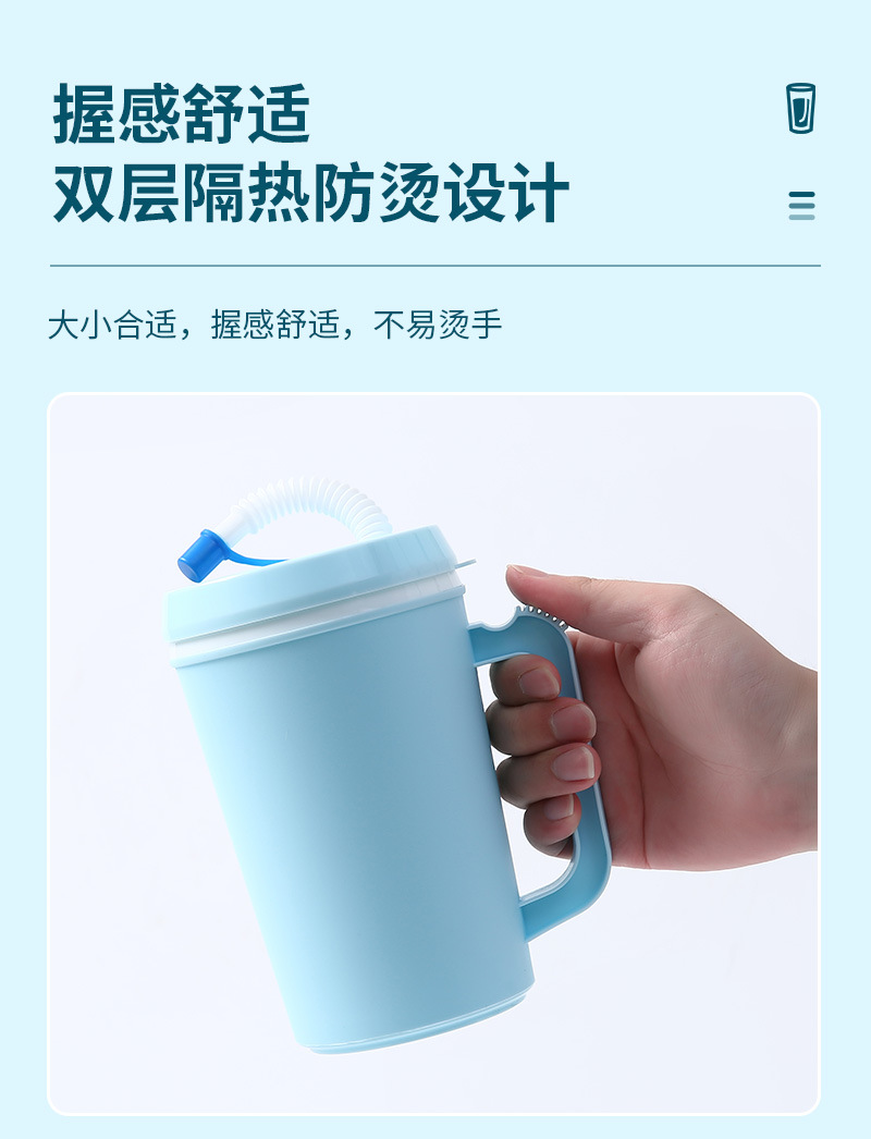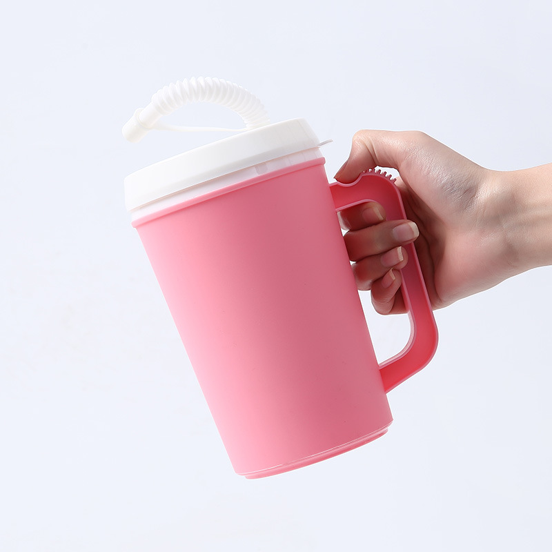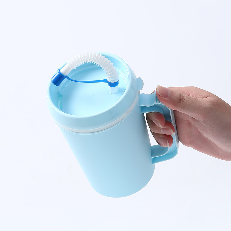 34OZ 미국 대용량 여행 컵 자동차 컵 PP 더블 레이어 손잡이 밀짚 플라스틱 컵 머그잔