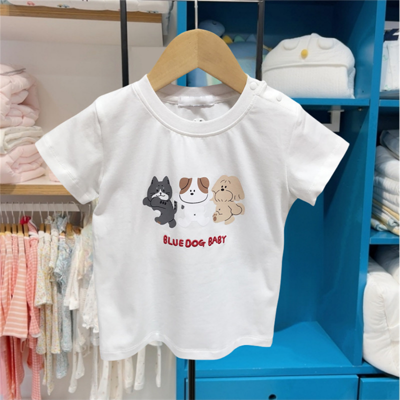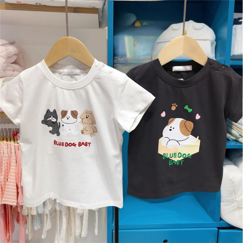 한국판 아동복 여름 스타일 남녀 아기용 순면 반팔 스포츠 티셔츠 라운드넥 가볍고 통기성 좋은 MS441003