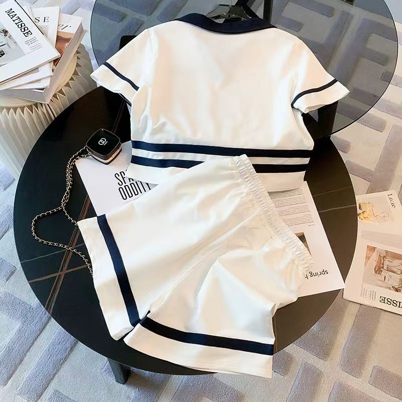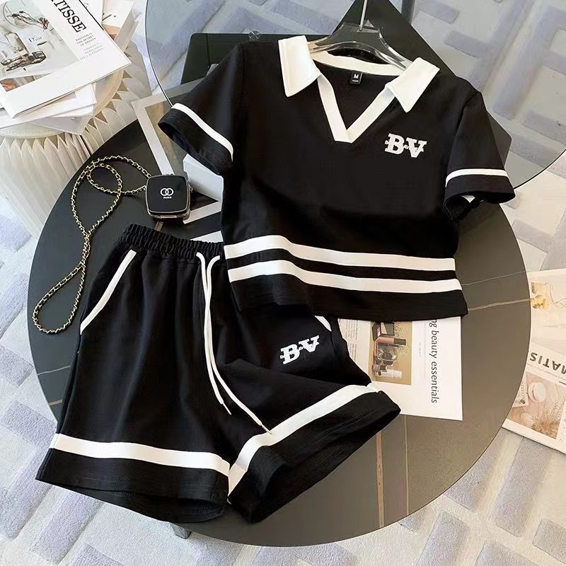 여자 캐주얼 여름 세트 2024 새로운 도착 한국 스타일 느슨한 운동복 투피스 세트 얇은 여름 반바지 세트스토어 가기