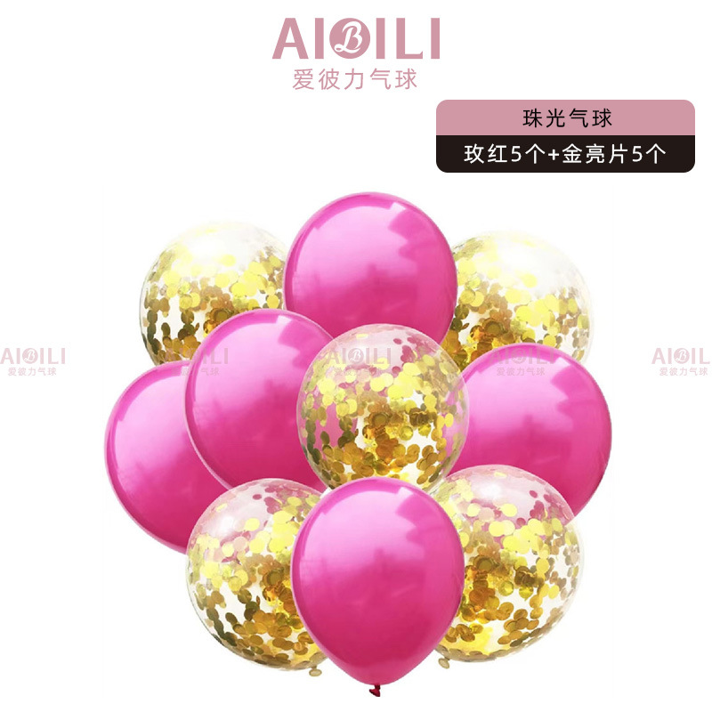 • 진주 빛 풍선 [로즈 레드 5 골드 스팽글 5]]