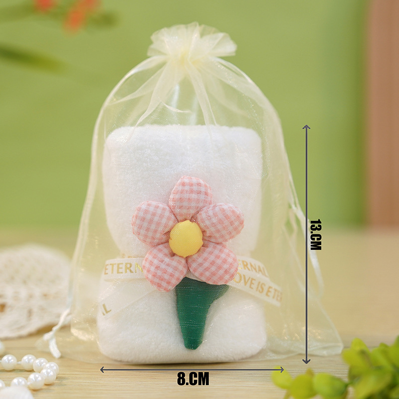 • 핑크 해바라기 + 흰색 수건 + 메쉬 가방