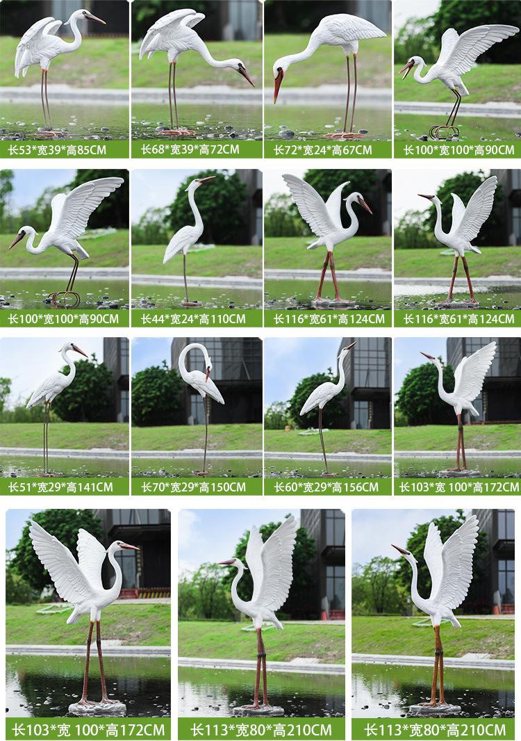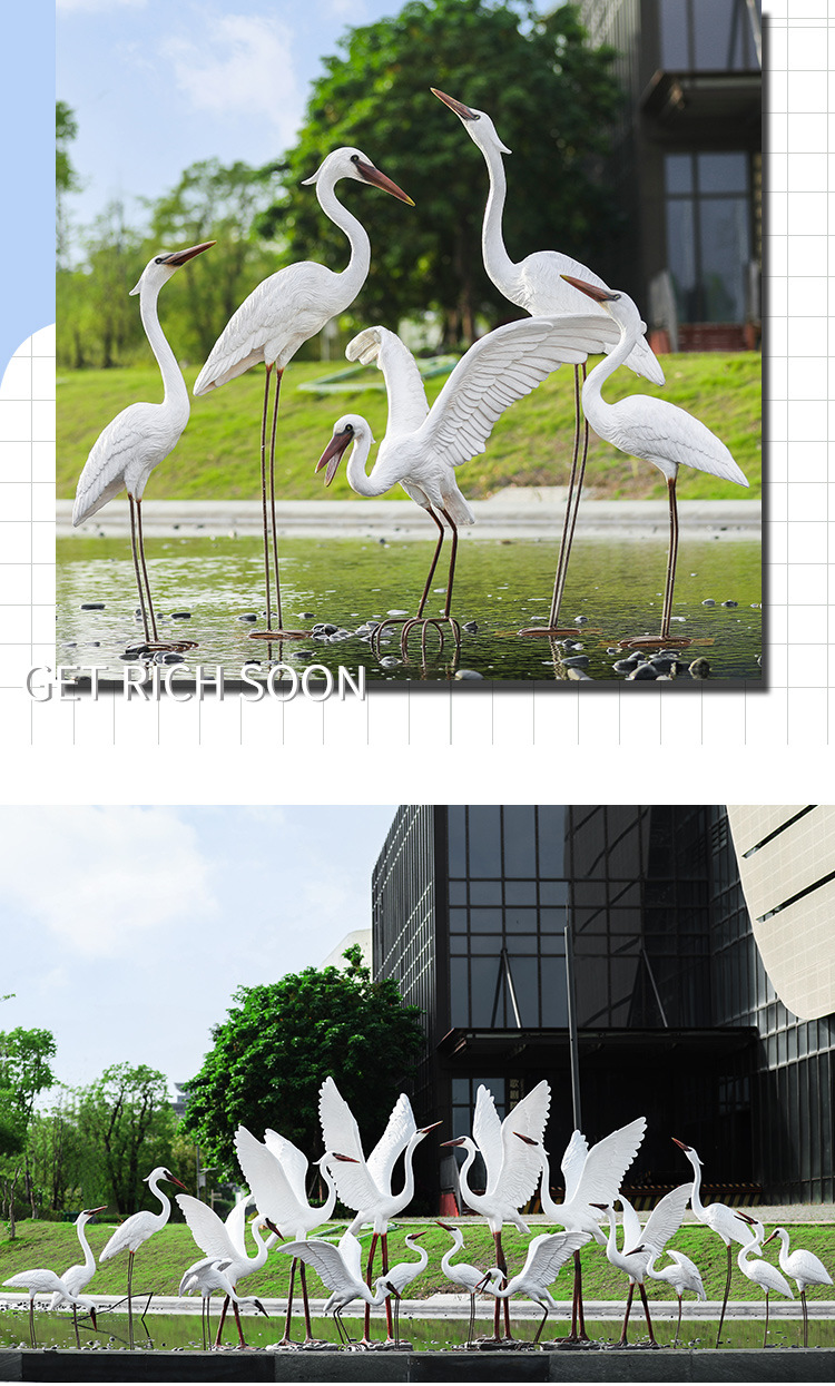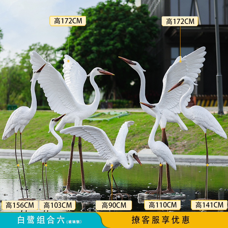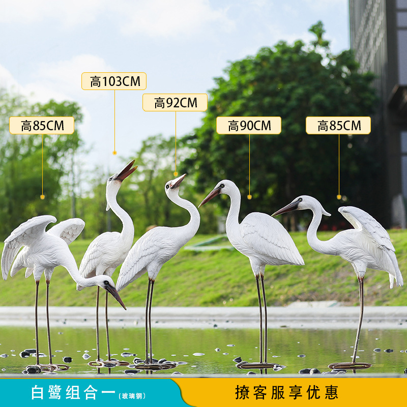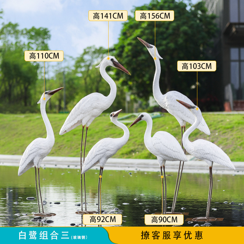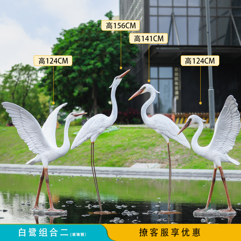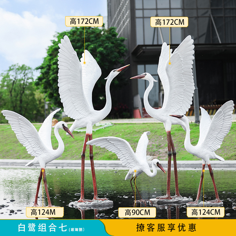 유리 섬유 강화 플라스틱 시뮬레이션 백로 조각 장식 야외 대형 꽃 정원 안뜰 수영장 풍경 장식스토어 가기