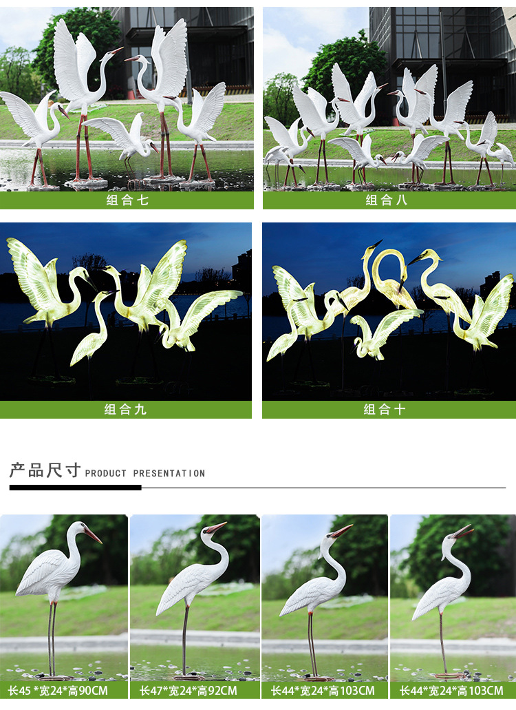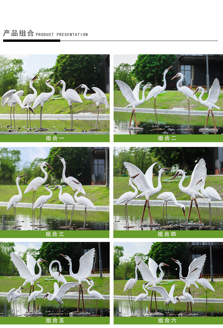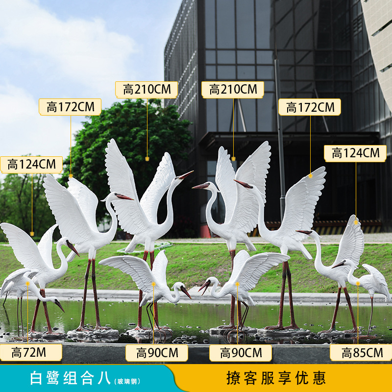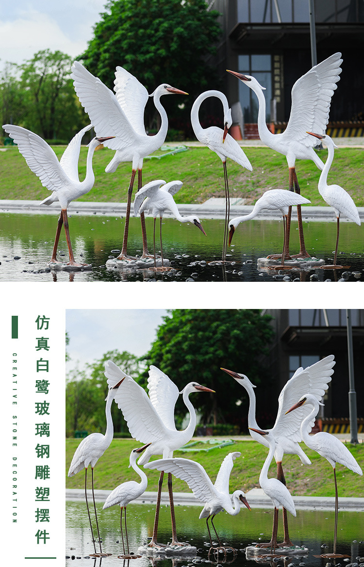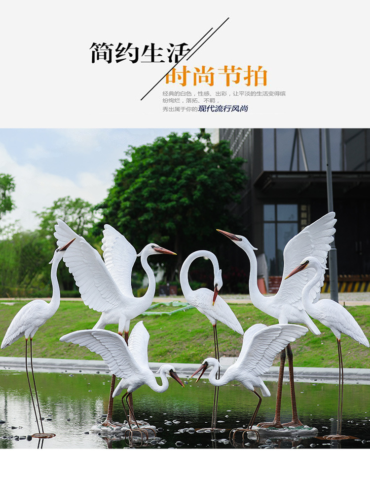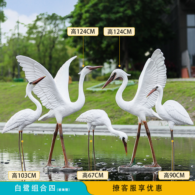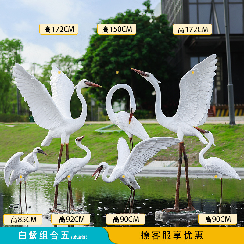 유리 섬유 강화 플라스틱 시뮬레이션 백로 조각 장식 야외 대형 꽃 정원 안뜰 수영장 풍경 장식스토어 가기