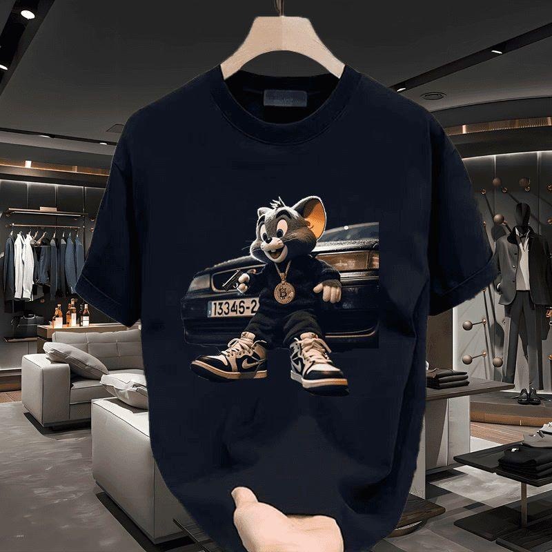 아메리칸 스타일 트렌디 브랜드 올 매치 캐주얼 하프 슬리브 티셔츠 남성 여름 새로운 느슨한 만화 퓨어 코튼 하이 스트리트 쇼트 슬리브 탑스토어 가기