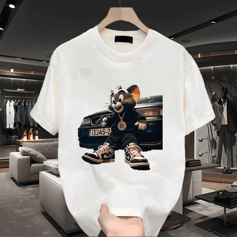 아메리칸 스타일 트렌디 브랜드 올 매치 캐주얼 하프 슬리브 티셔츠 남성 여름 새로운 느슨한 만화 퓨어 코튼 하이 스트리트 쇼트 슬리브 탑