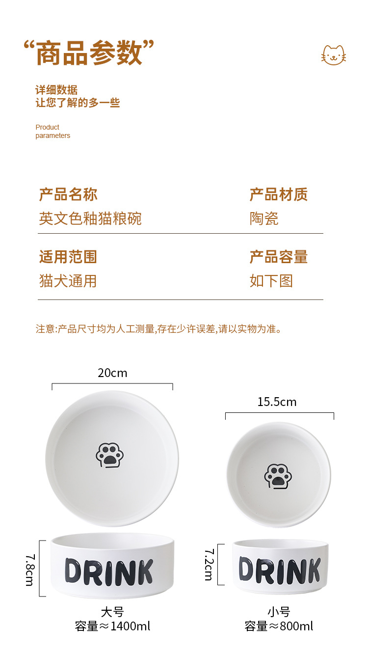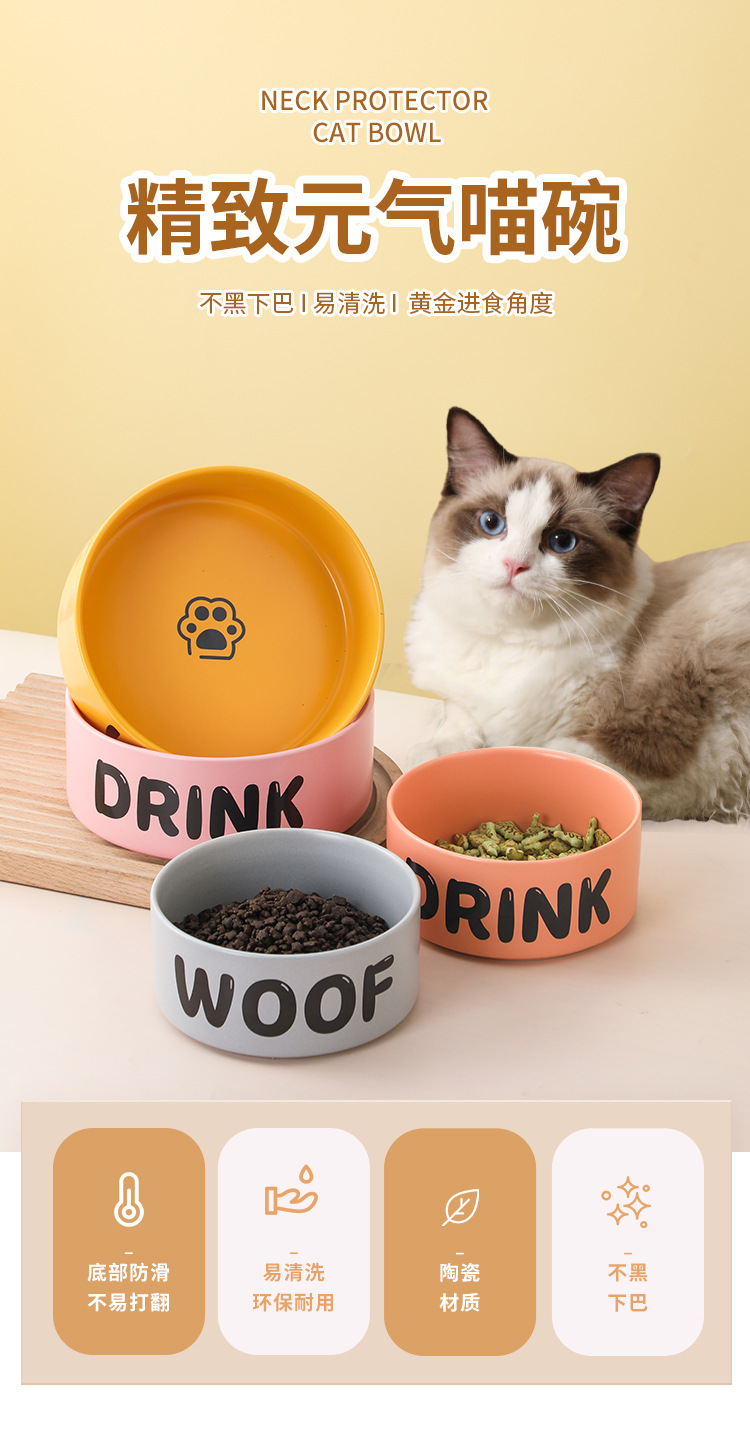 넘침 방지 DRINK 고양이 밥그릇 세라믹 고양이 사료 대형 목 보호 대구경 강아지 밥그릇 강아지 물그릇 애완동물 밥그릇