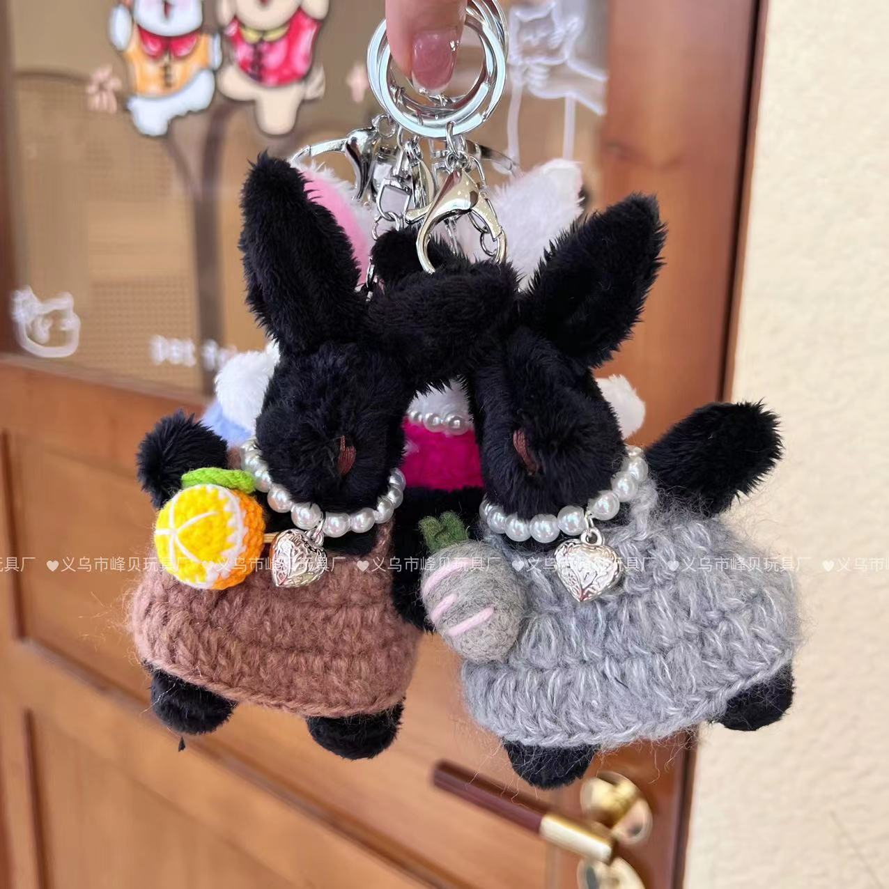 턱받이 흑백 토끼 높은 색 가치 토끼 드레싱 인형 울 인형 핸드독 봉제 키 체인 교수형 가방