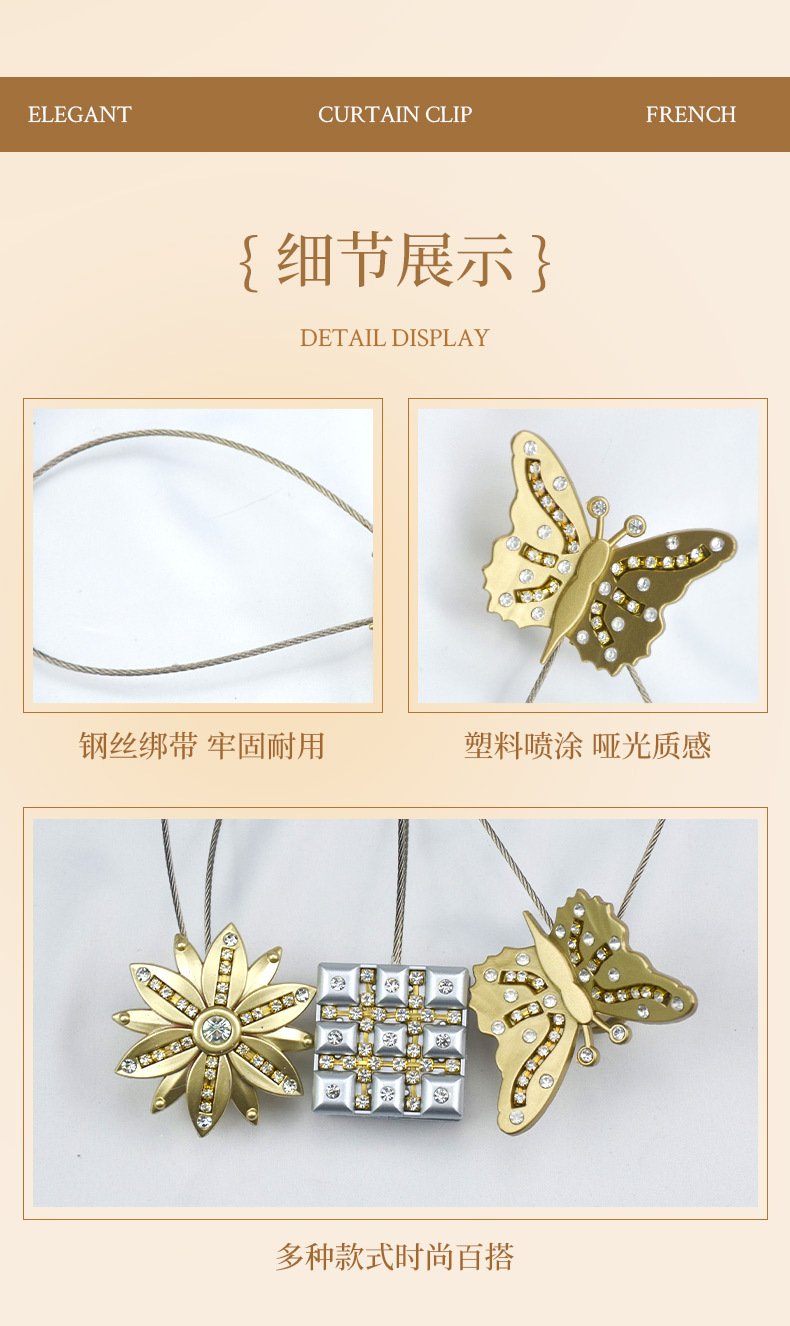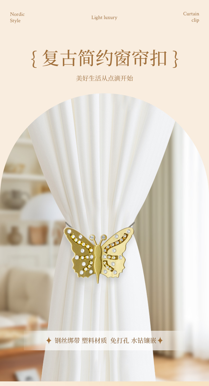 나비 커튼 스트랩 레트로 거즈 커튼 스틸 와이어 마그네틱 커튼 버클 라이트 럭셔리 하이 엔드 침실 거실 홈 장식