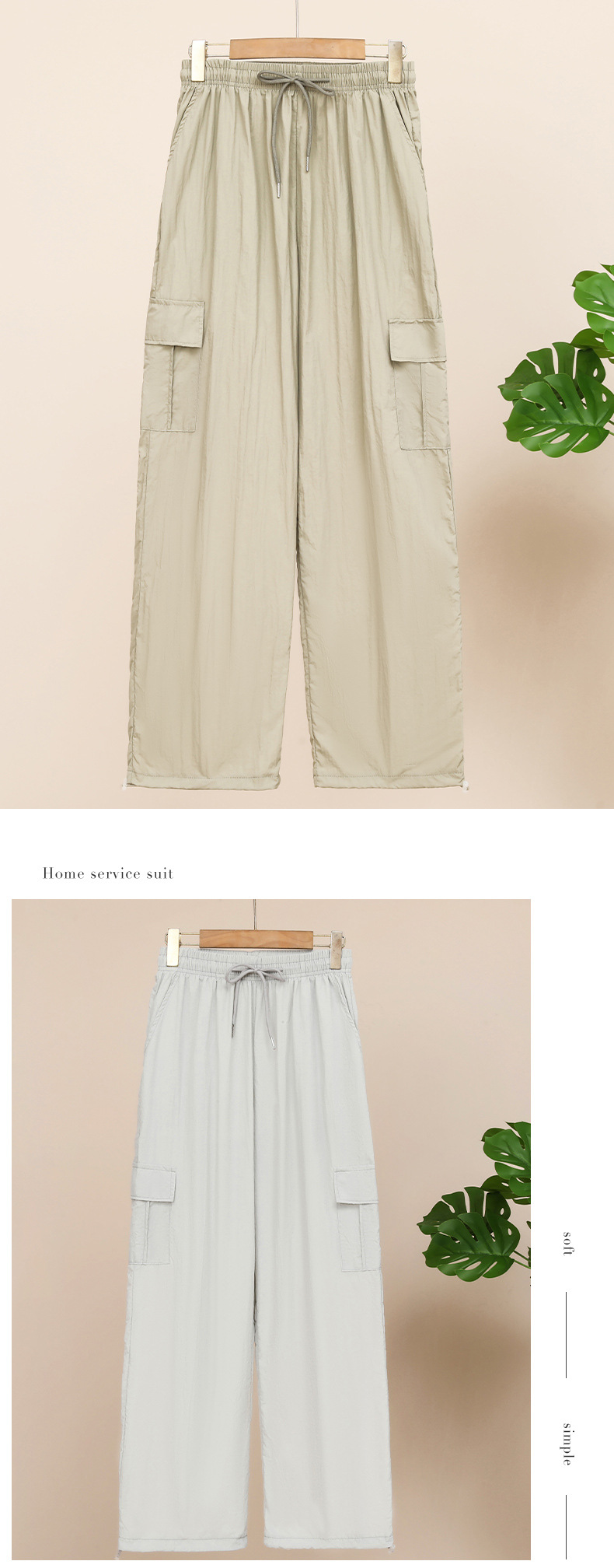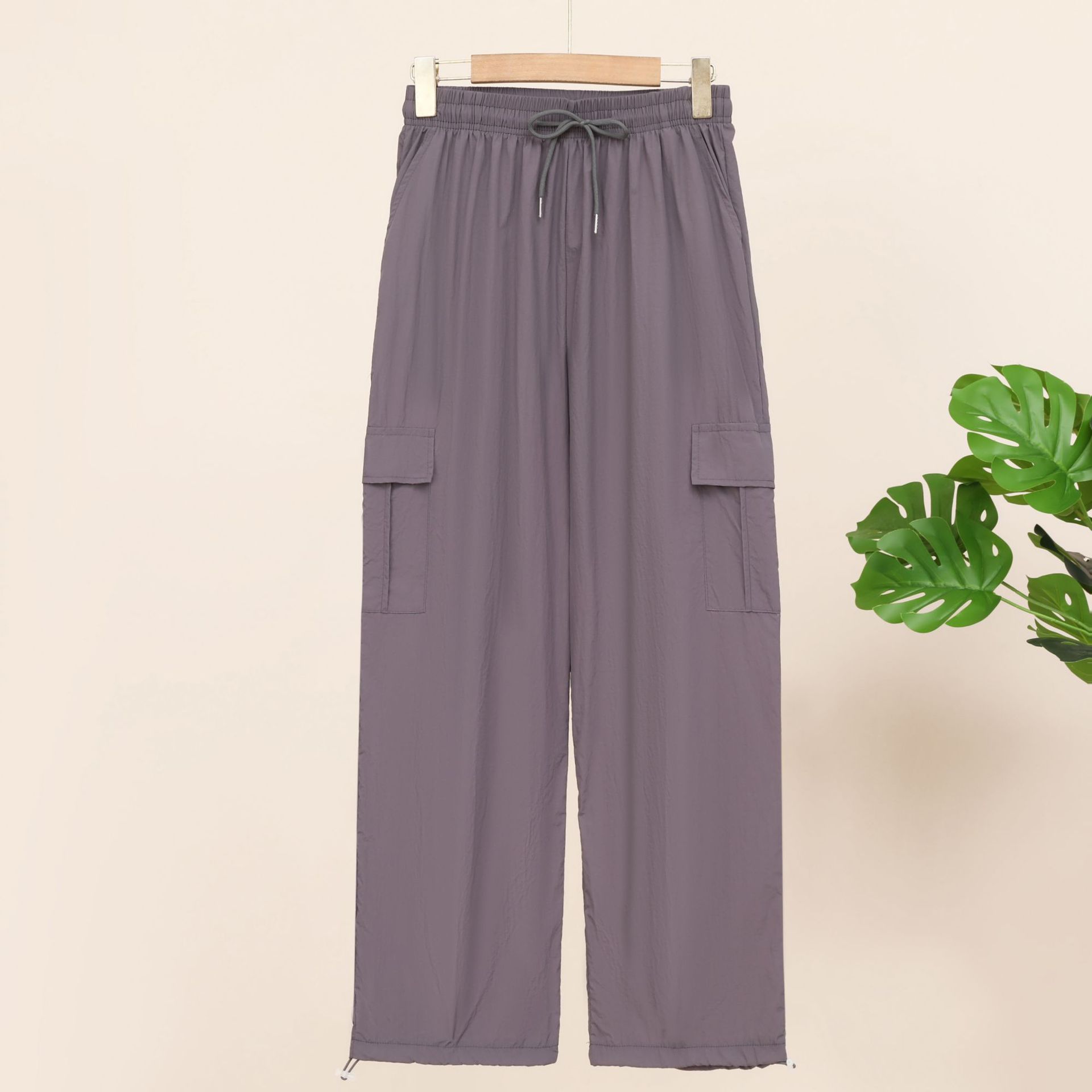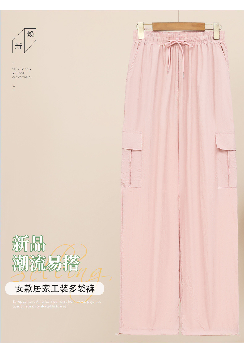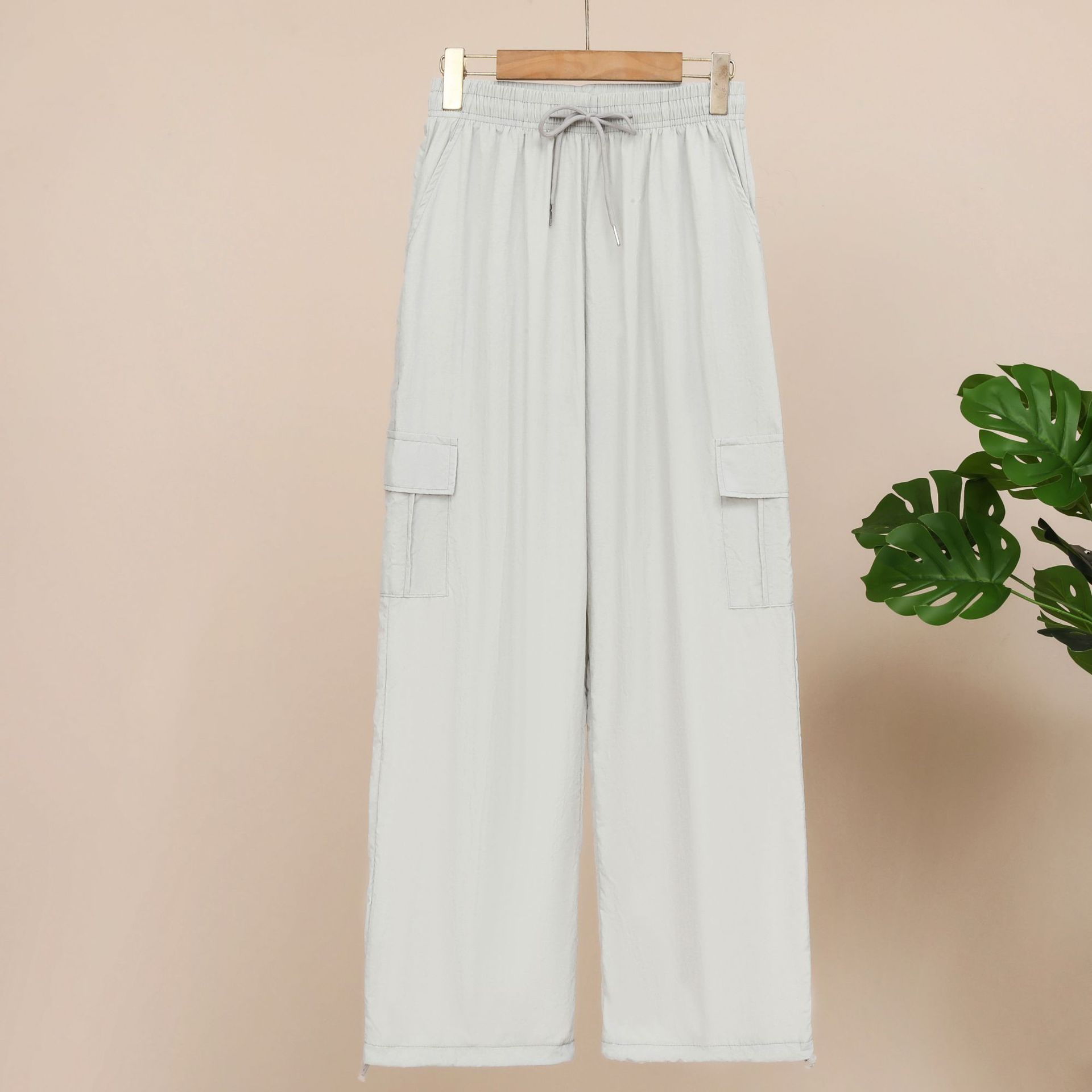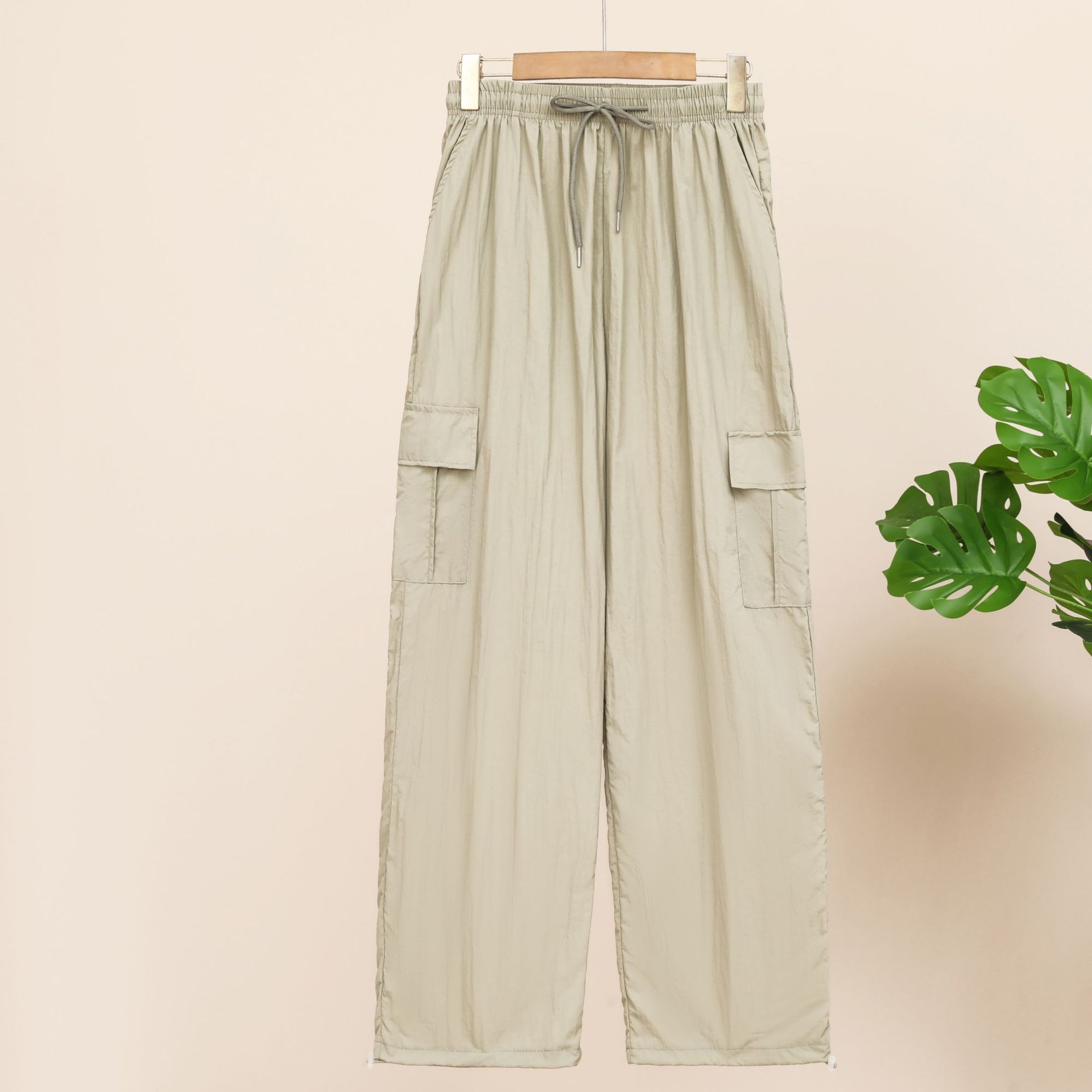 2024 여름 캐주얼 작업복 대형 포켓이있는 멀티 백 바지 높은 허리 와이드 레그 스포츠 캐주얼 바지 바지 바지 느슨한 바지