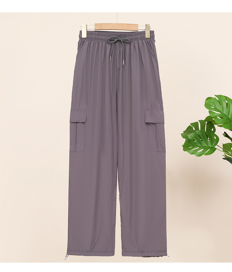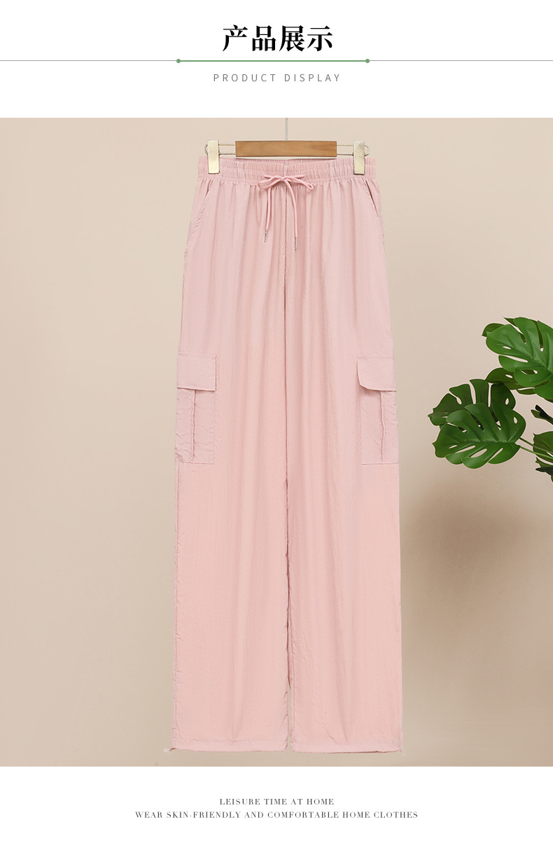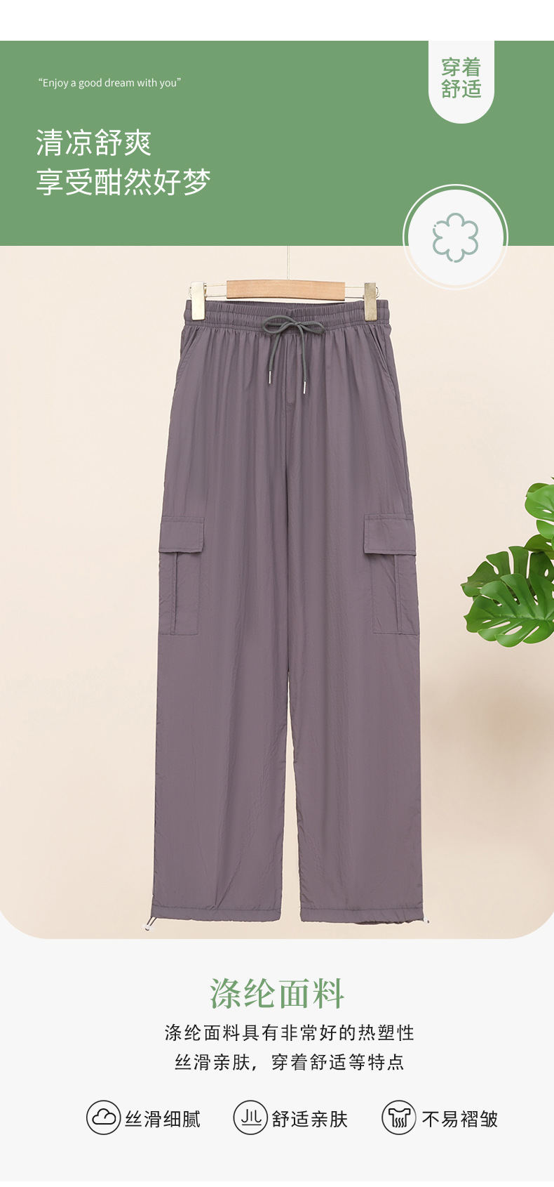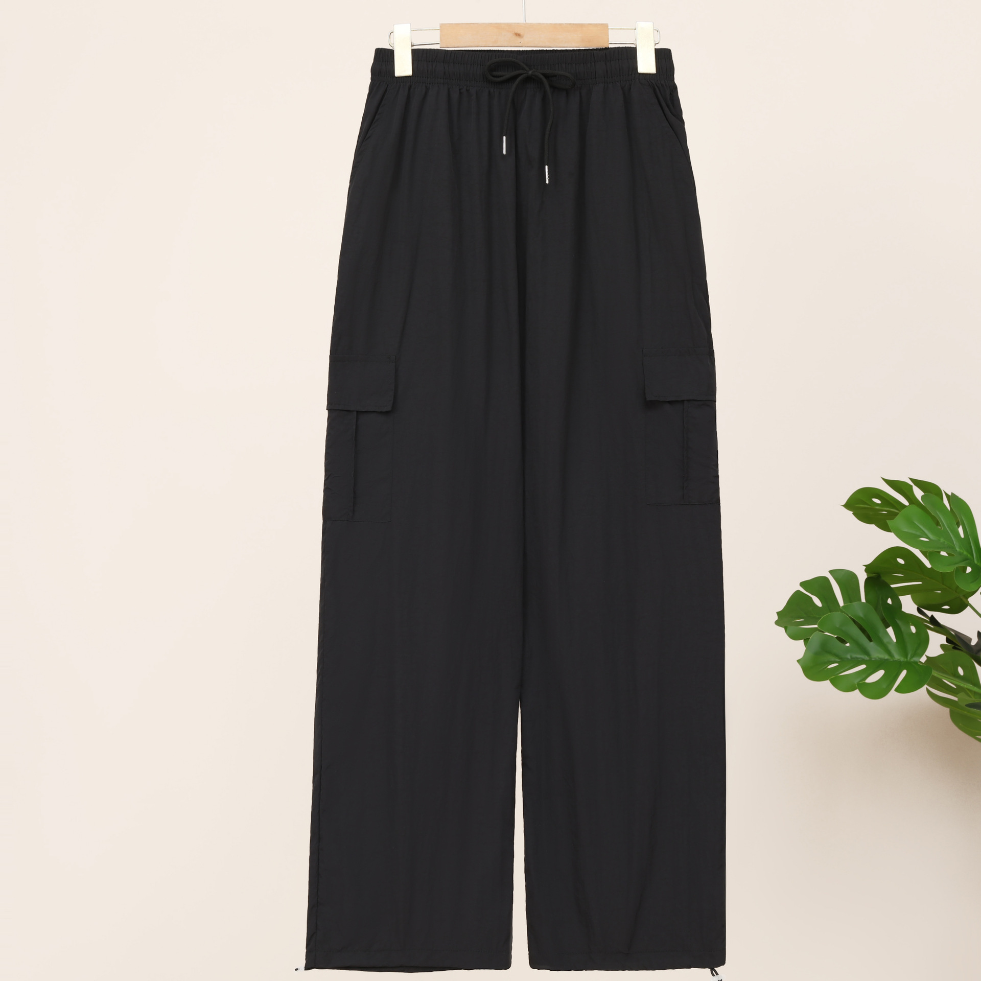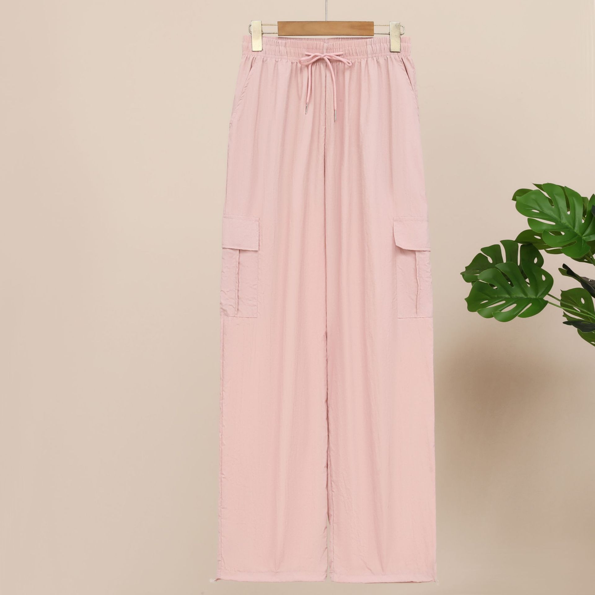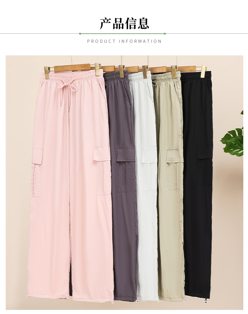 2024 여름 캐주얼 작업복 대형 포켓이있는 멀티 백 바지 높은 허리 와이드 레그 스포츠 캐주얼 바지 바지 바지 느슨한 바지