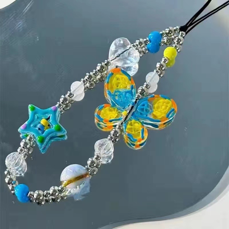 수제 Ins 스타일 손으로 그린 녹색 나비 구슬 휴대 전화 체인 휴대 전화 로프 맞춤형 교수형 장식 ccd 카메라 잃어버린 로프 아름다움스토어 가기
