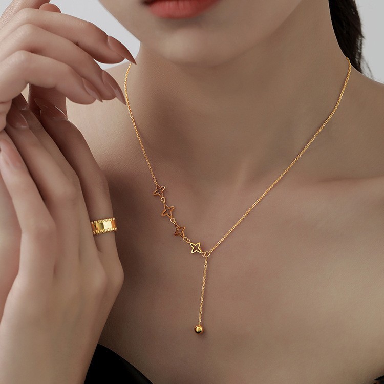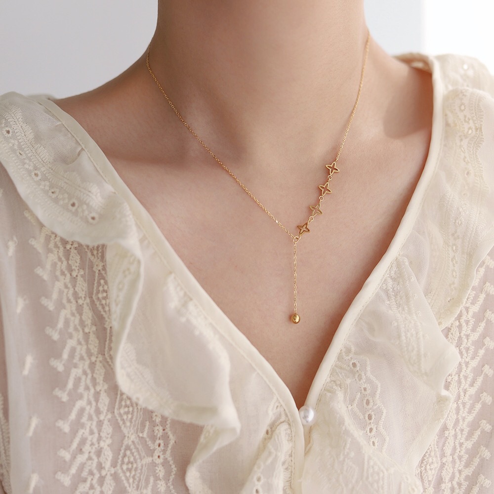 새로운 티타늄 스틸 컬러 프리 태슬 스타 목걸이 여성용 세련된 올 매치 라이트 럭셔리 하이 엔드 슬리밍 클래 클 체인 여성용 장식품