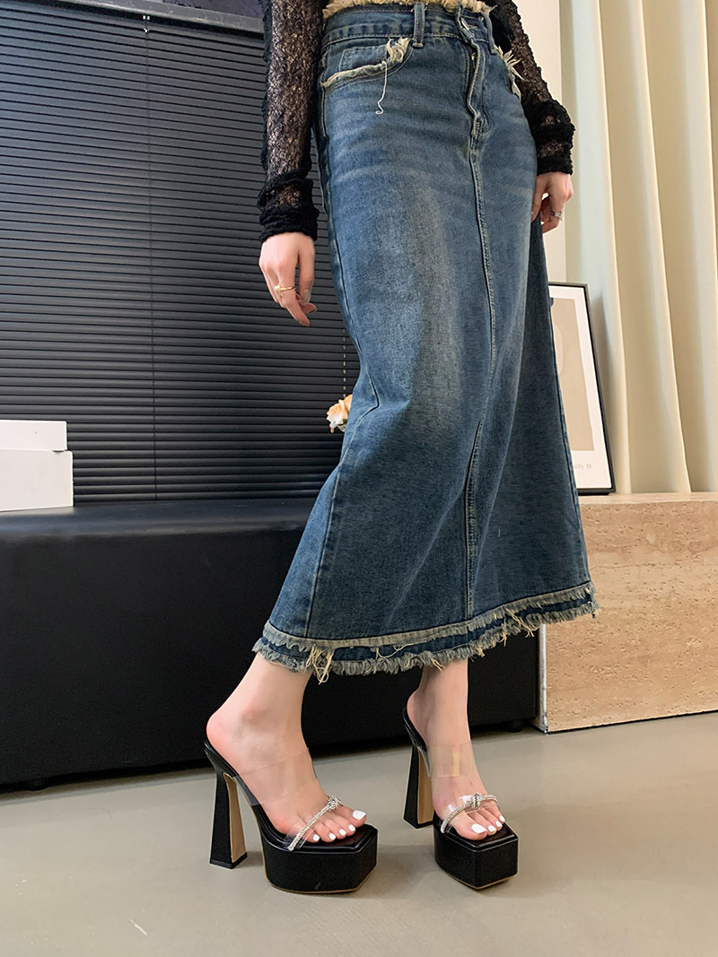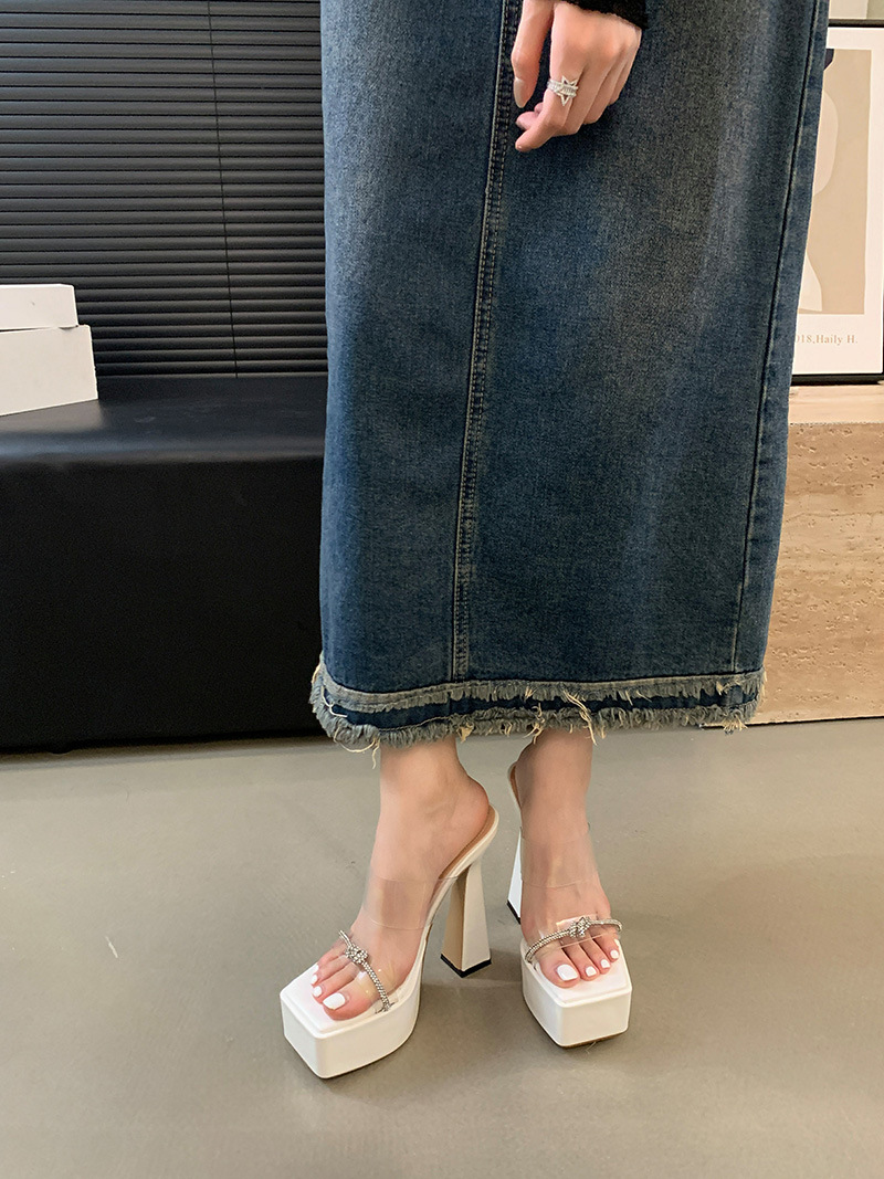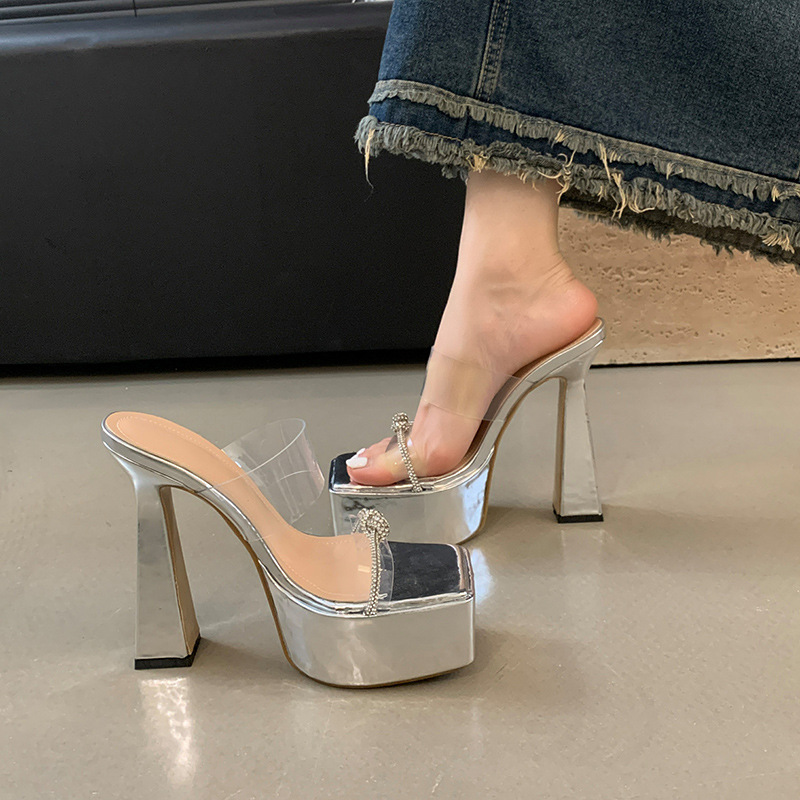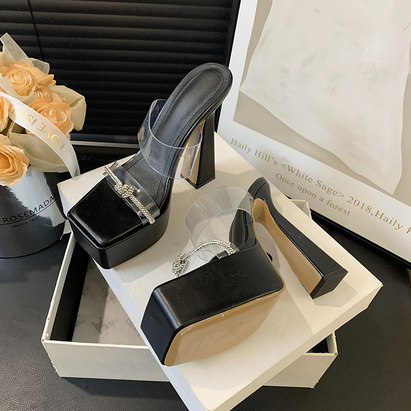 뒤꿈치 2024 여름 새로운 와인 컵 뒤꿈치 방수 플랫폼 두꺼운 뒤꿈치 라인석 여성 샌들 대외 무역 하이힐 투명 슬리퍼스토어 가기