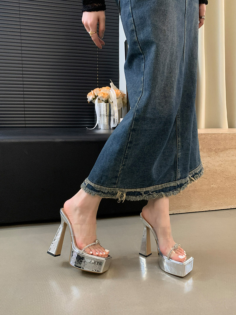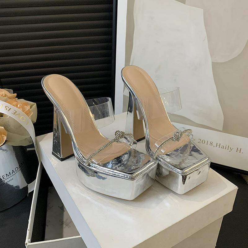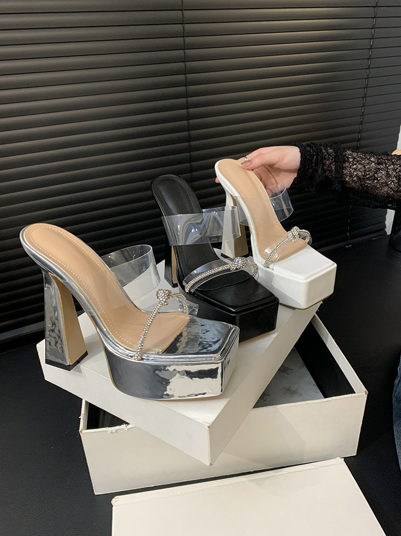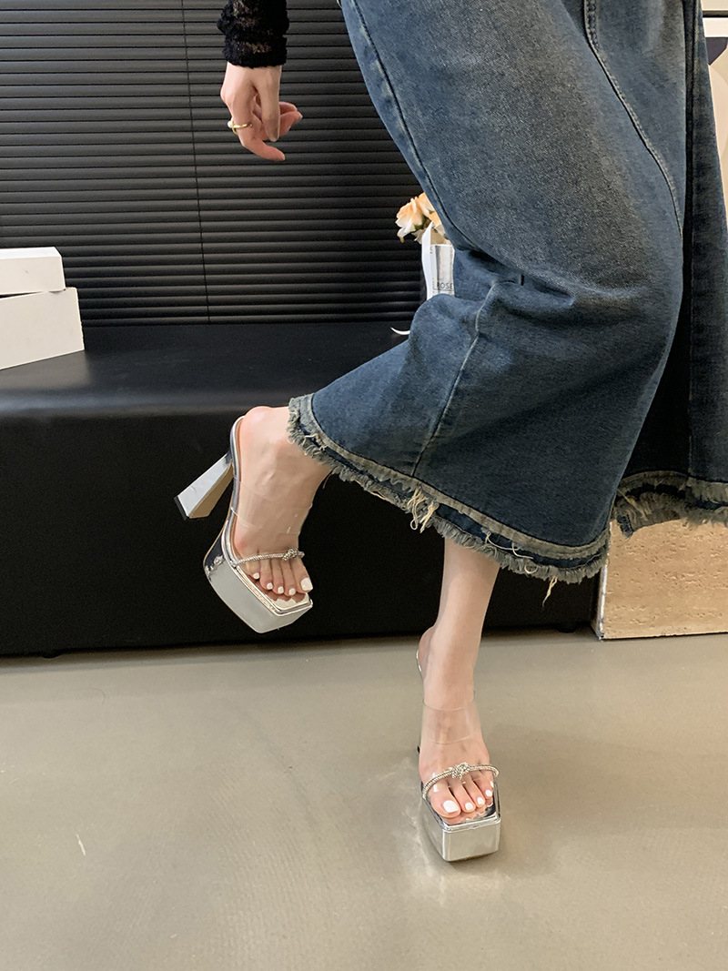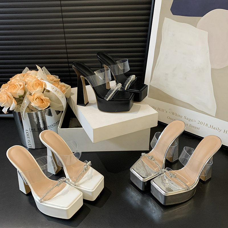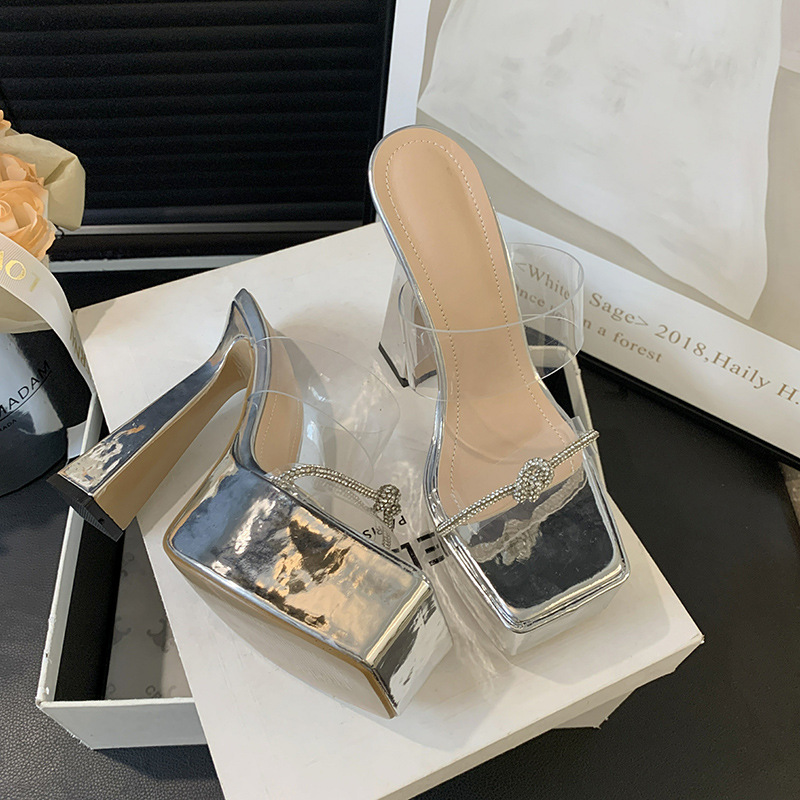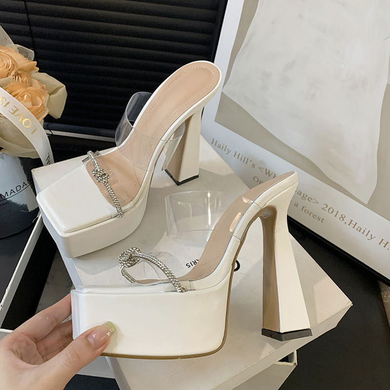 뒤꿈치 2024 여름 새로운 와인 컵 뒤꿈치 방수 플랫폼 두꺼운 뒤꿈치 라인석 여성 샌들 대외 무역 하이힐 투명 슬리퍼