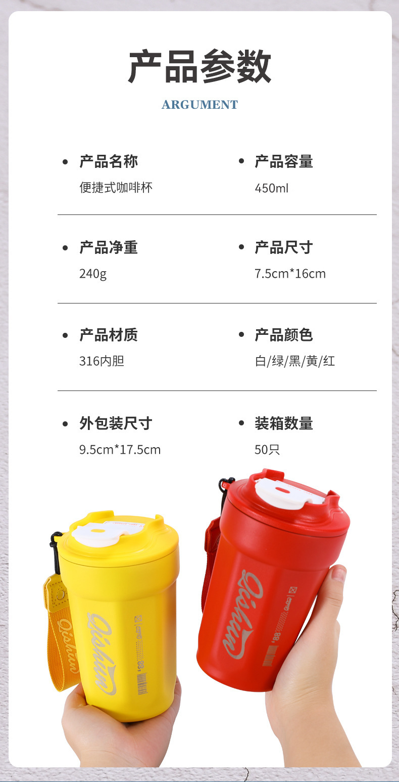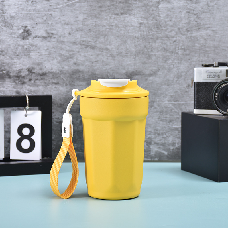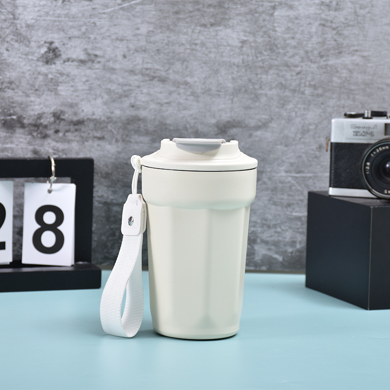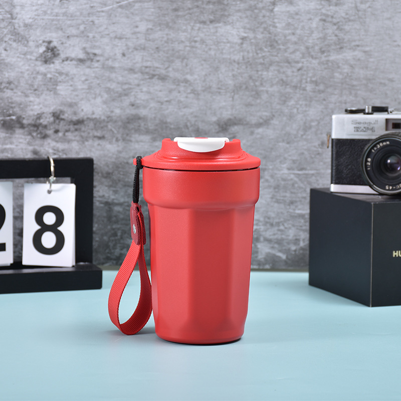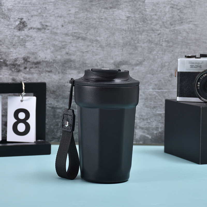 새로운 316 스테인레스 스틸 팔각형 더블 마시는 커피 컵 더블 레이어 진공 보온병 야외 휴대용 끈 컵
