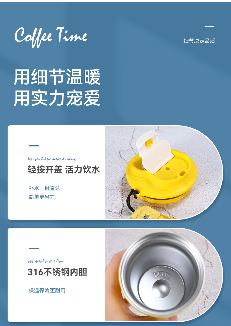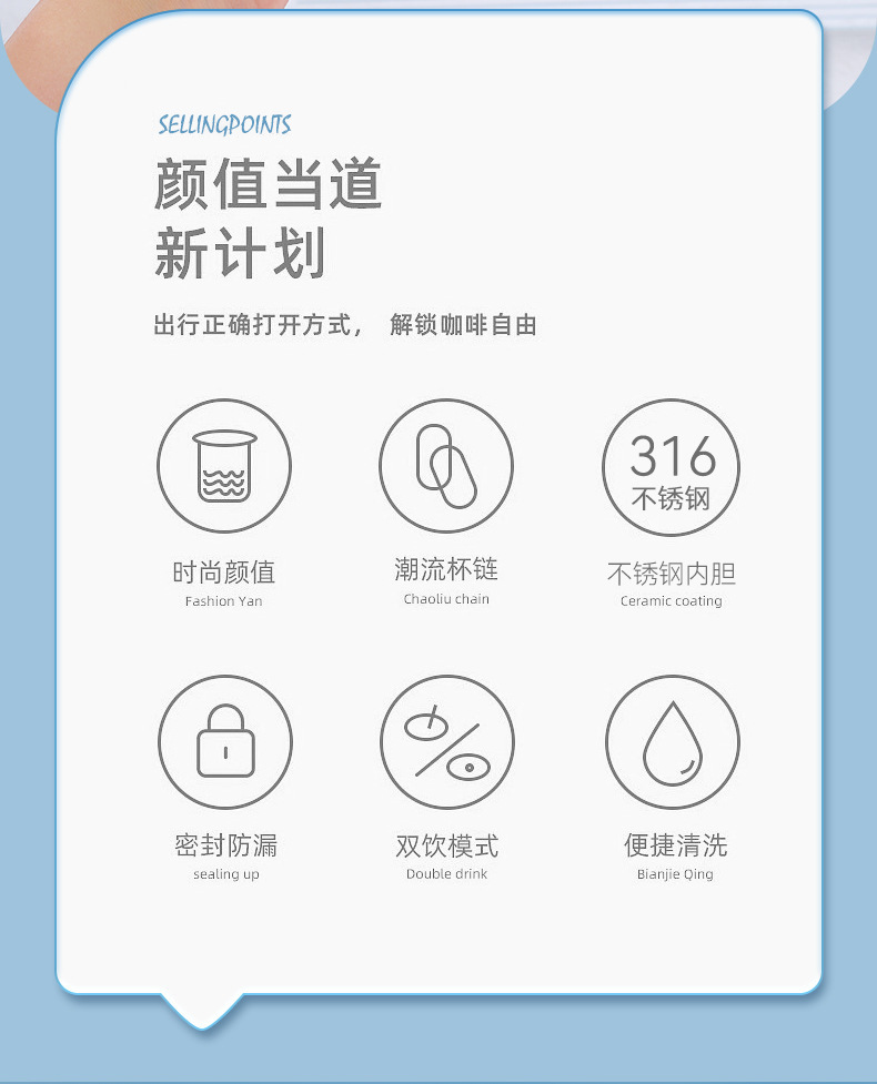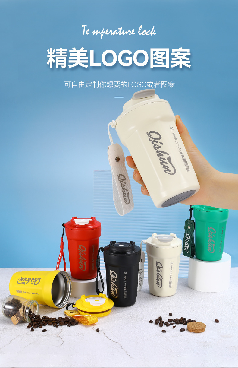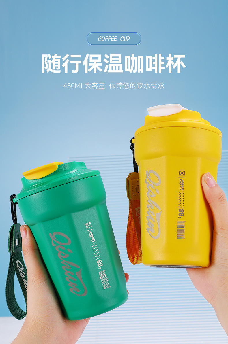 새로운 316 스테인레스 스틸 팔각형 더블 마시는 커피 컵 더블 레이어 진공 보온병 야외 휴대용 끈 컵