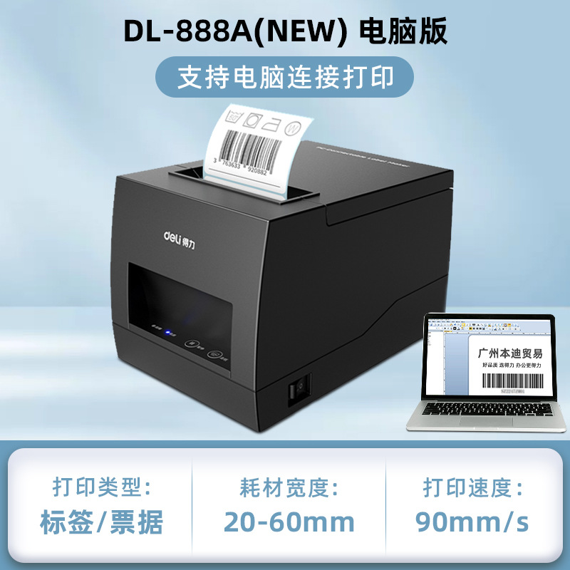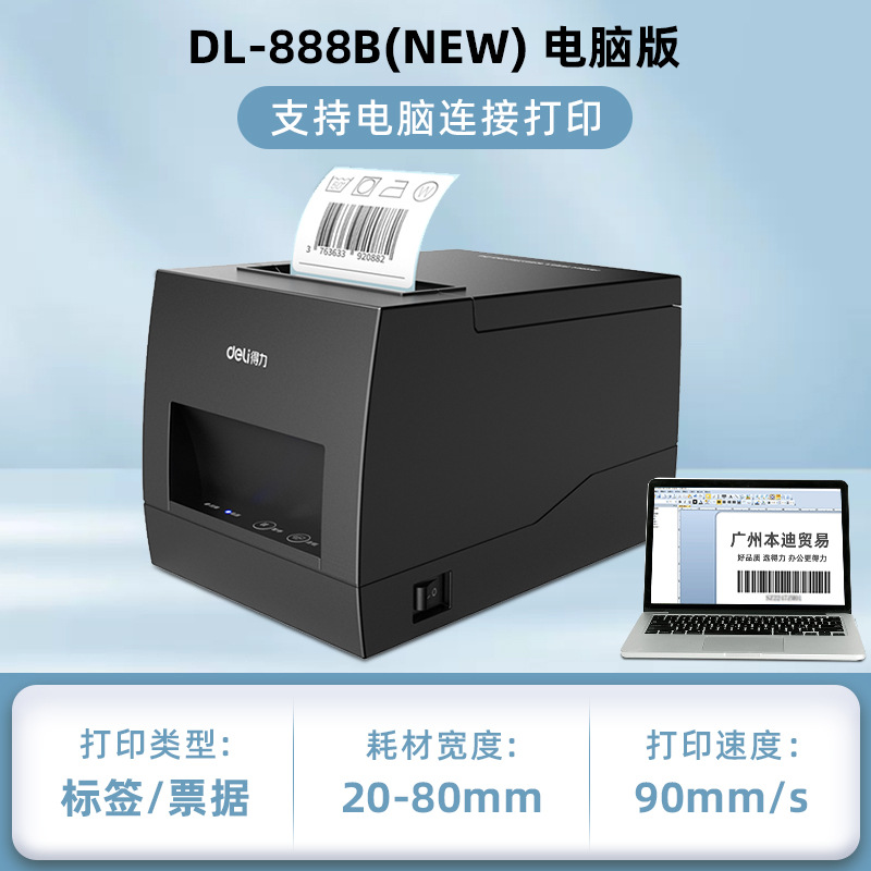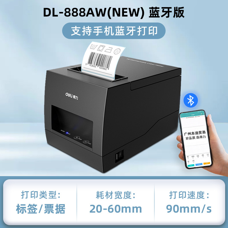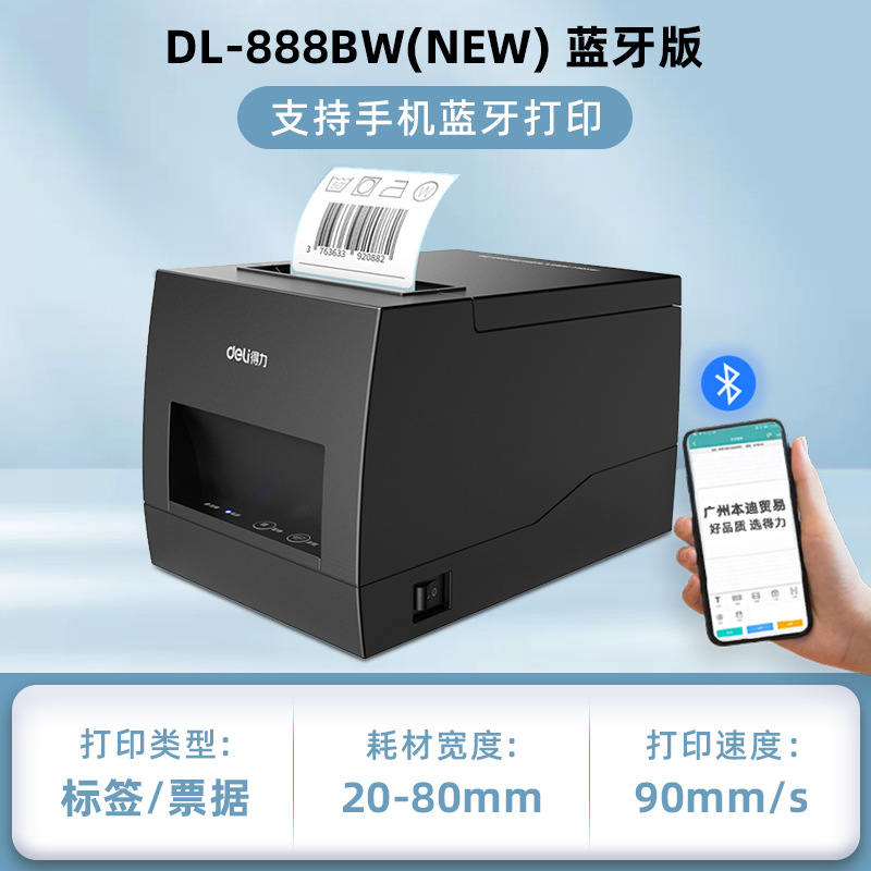 델리 886 라벨 빌 열 프린터 휴대 전화 블루투스 접착 라벨 바코드 빌 단일 기계