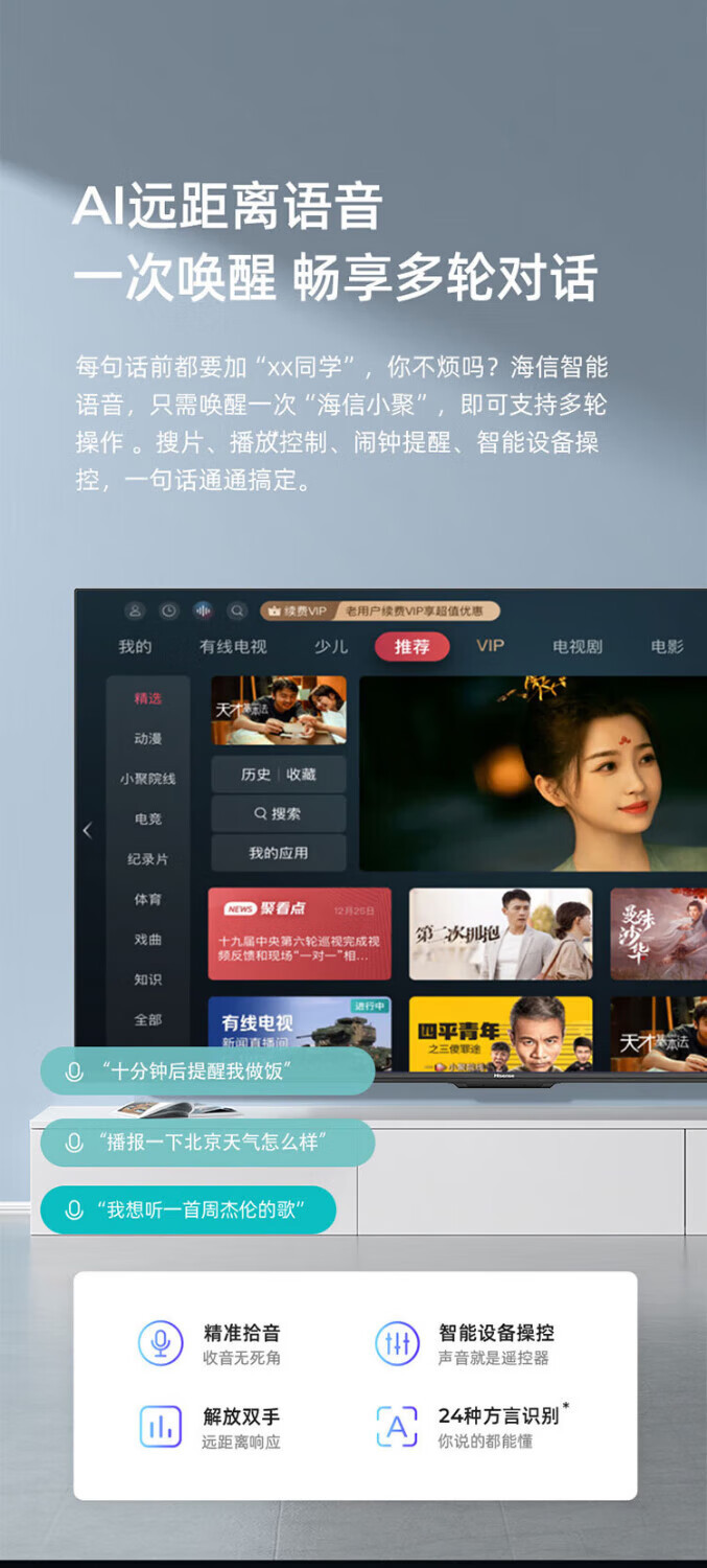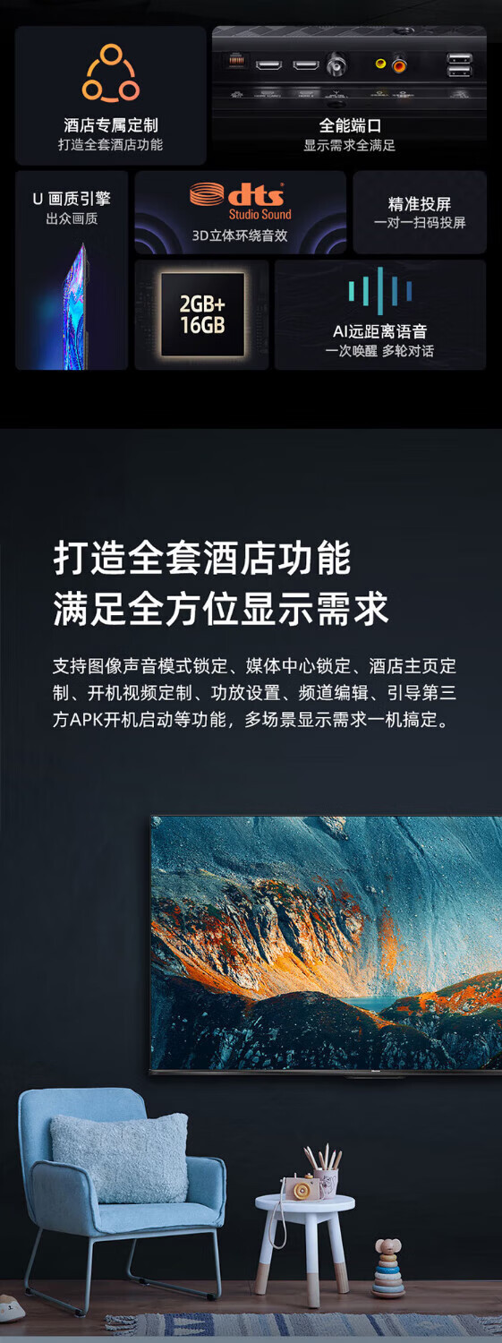 Hisense 55H6K 55인치 4K 호텔 상업용 LCD 평면 TV 스마트 네트워크 AI 원거리 음성스토어 가기